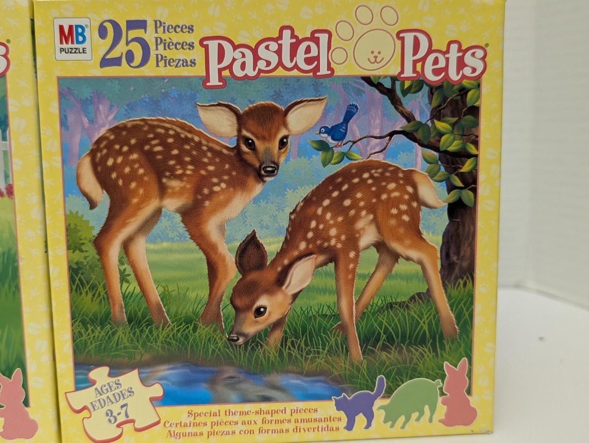 Lot Of 2 MB Pastel Pets 25 Piece Puzzles Puppies And Fawns Ages 3 To 7