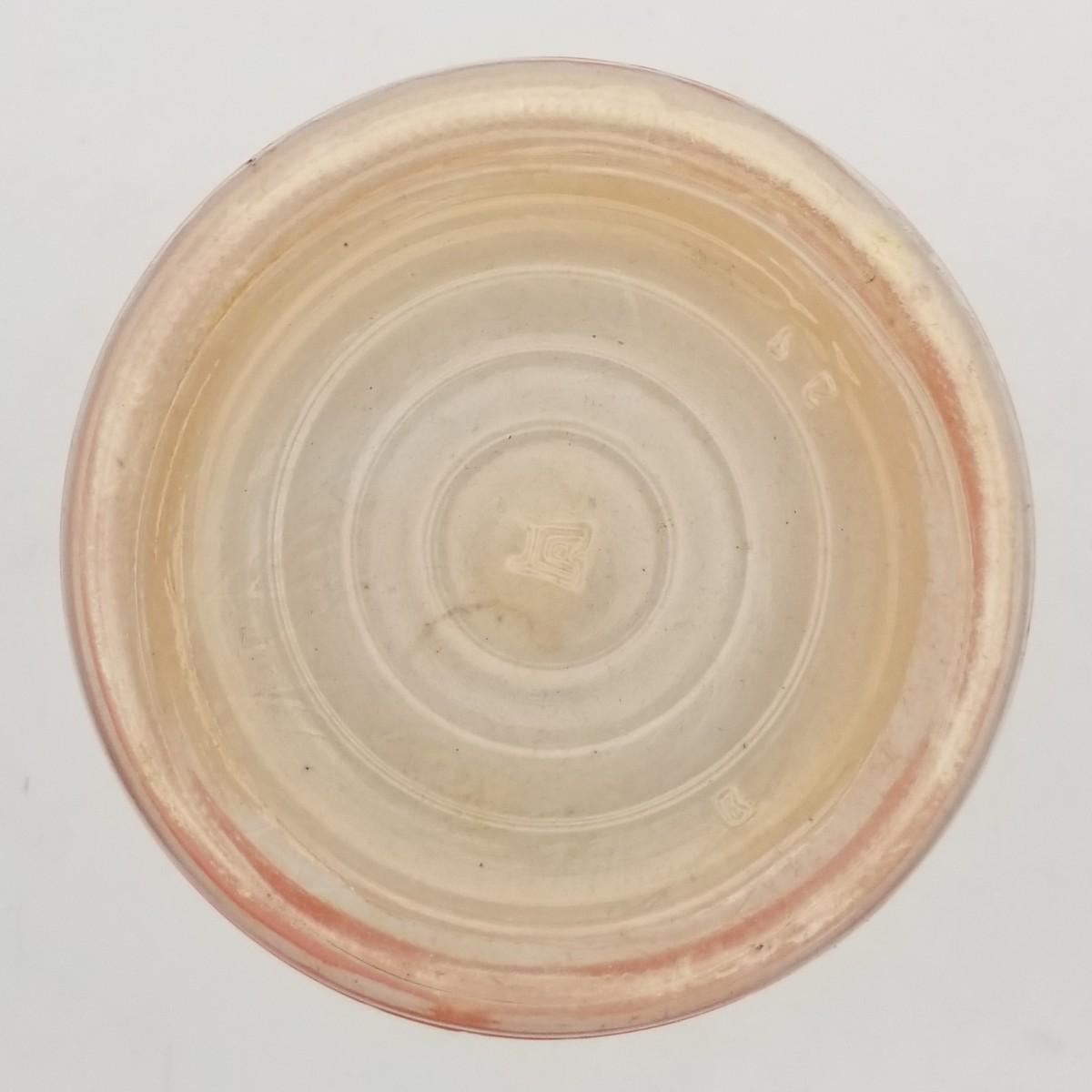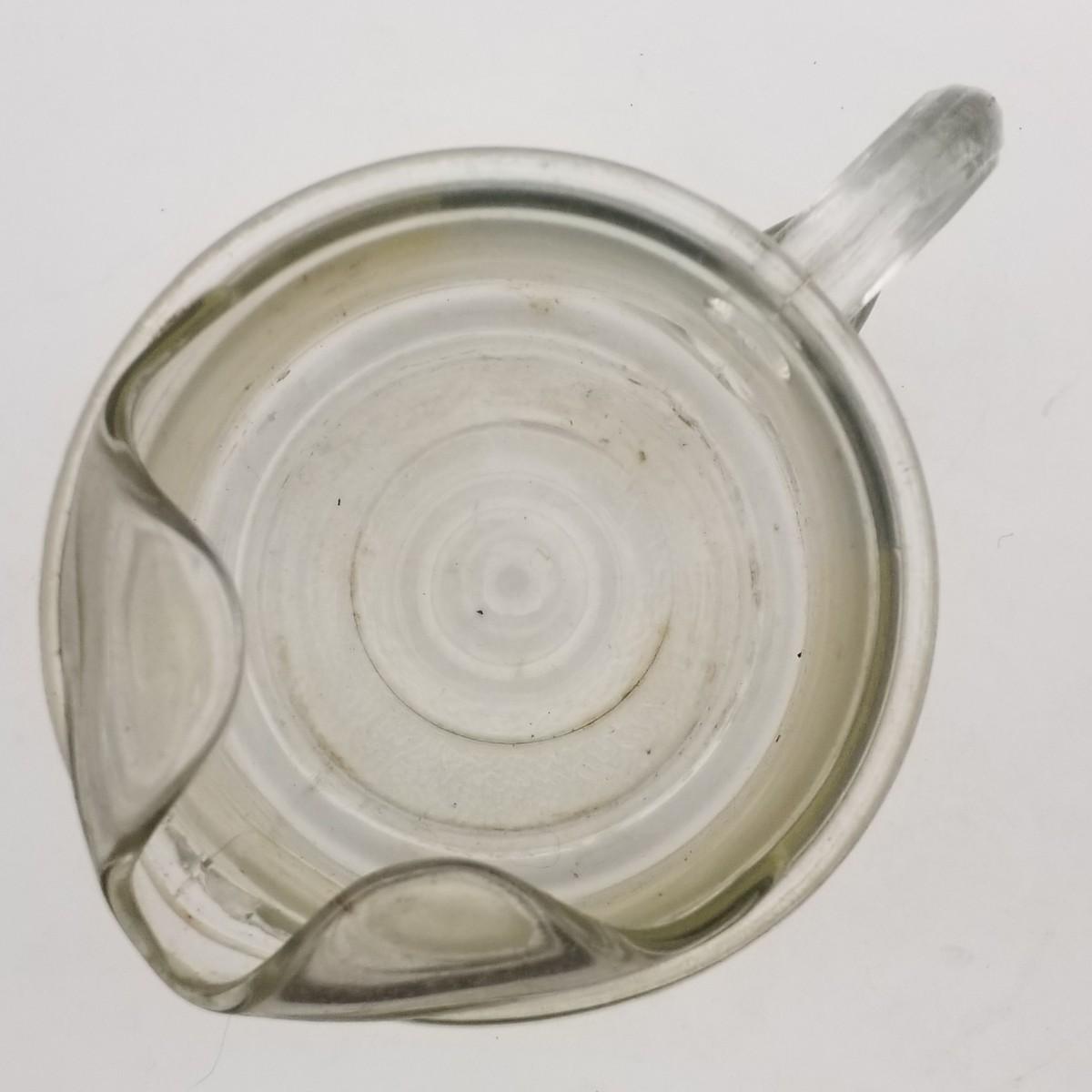Unknown Maker Possibly Hazel Atlas, Narrow White Bands / Stripes and Narrower Yellow Bands / Stripes, approximately 5 wide x 7 with handle x 9 1/2 inches.