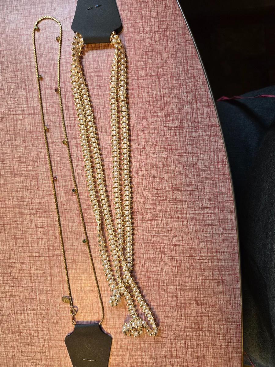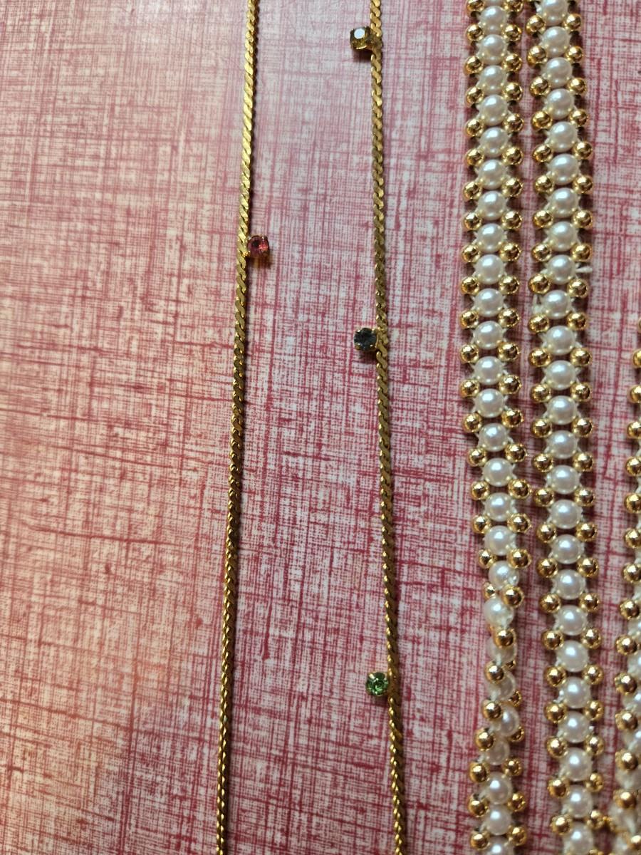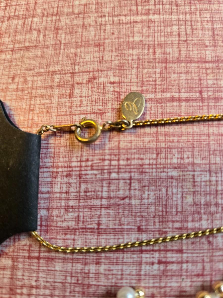 Gold necklace is marked, see photo has multivolored stones on it, clasp closure 11"