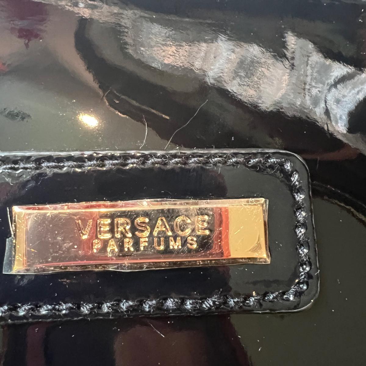 Lot of 2 New Versace Black Gold Luxury Promo Tote Bags Patent Leather