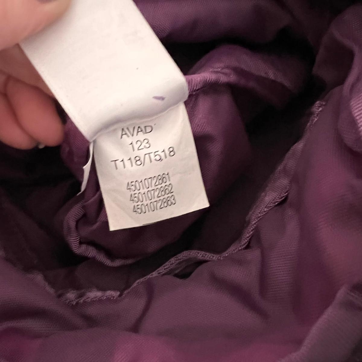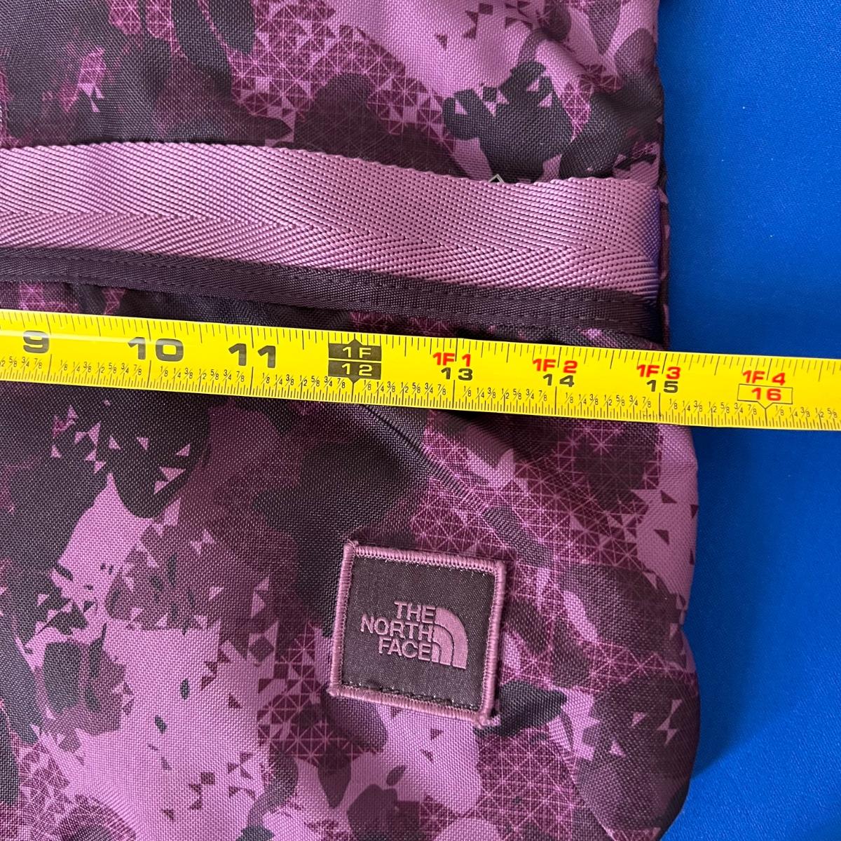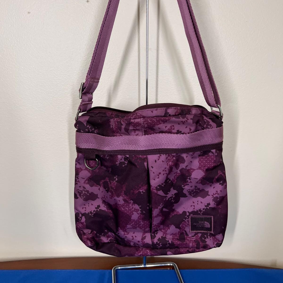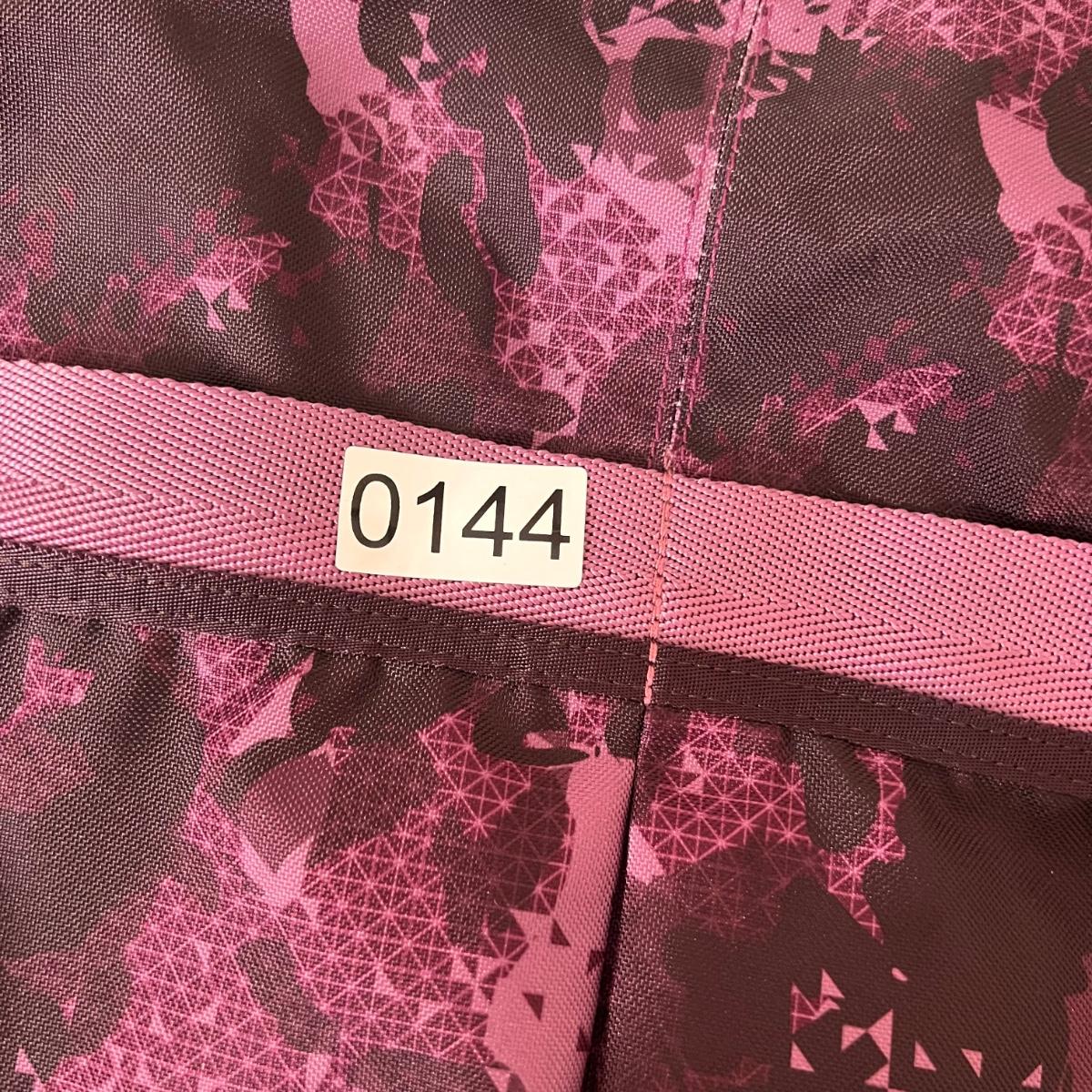 Laying flat it a Purple Camouflage zip tote bag with most of the same features. No visible flaws. Rated very good to excellent condition.