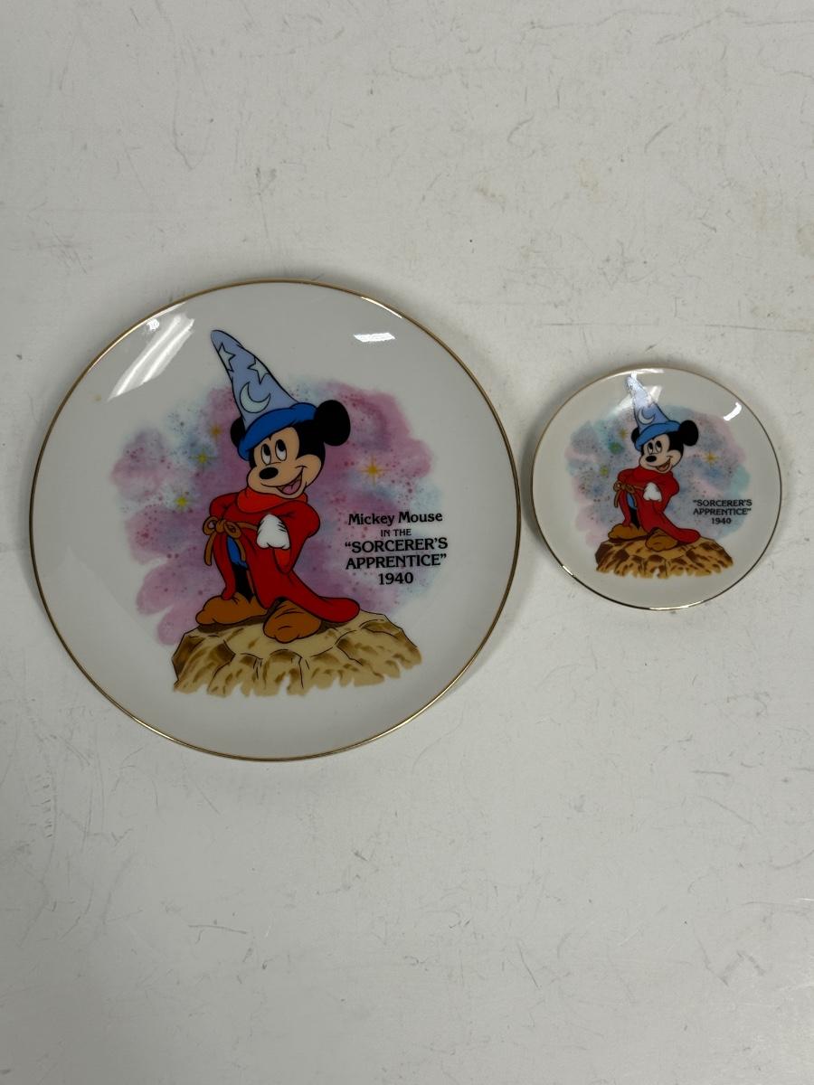 lot of 2 plates 6" and 3" - Walt Disney's Vintage Mickey Mouse w/ Sorcerer Hat