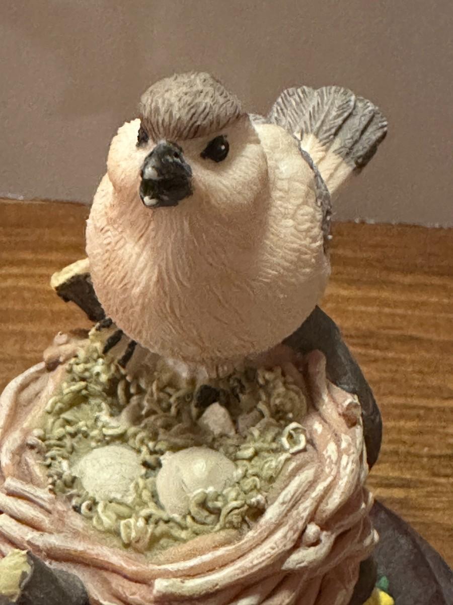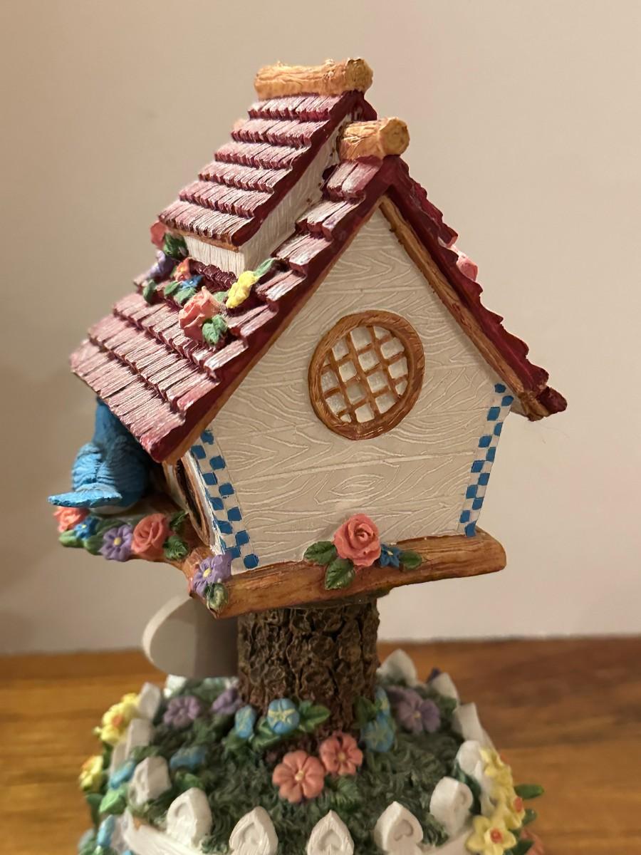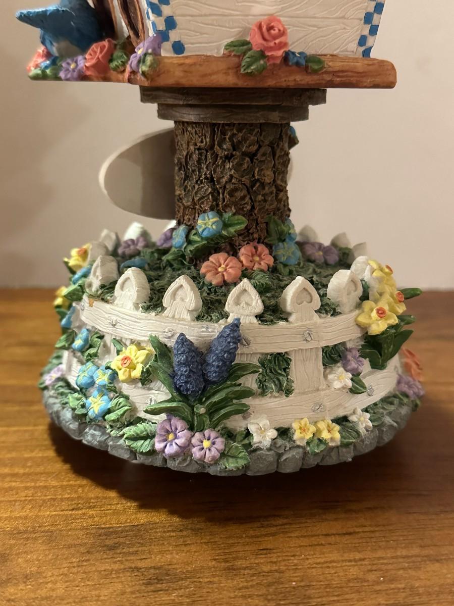 Lot of 2 Resin BIrd Items- Music Box Birdhouse "Welcome" and Figurine, no chips detected