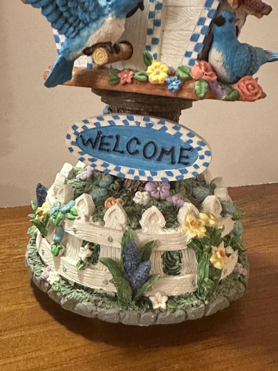 Lot of 2 Resin BIrd Items- Music Box Birdhouse "Welcome" and Figurine