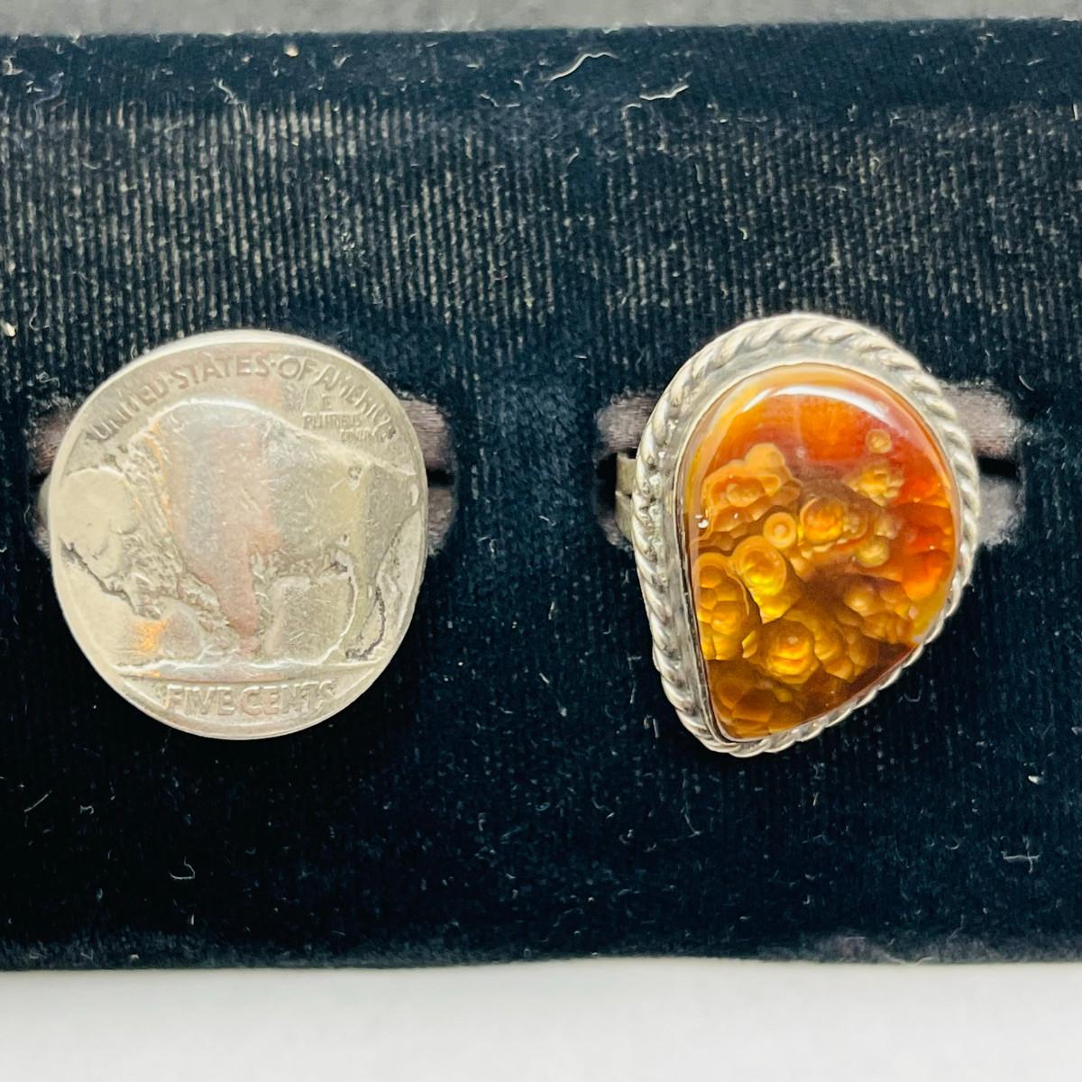 Lot of 2 Rings Buffalo Nickel & Fire Opal