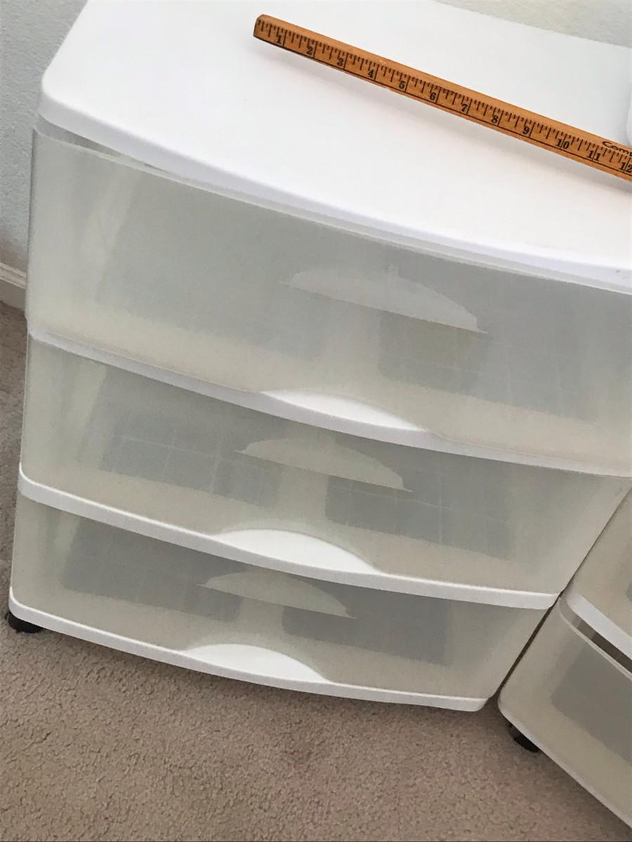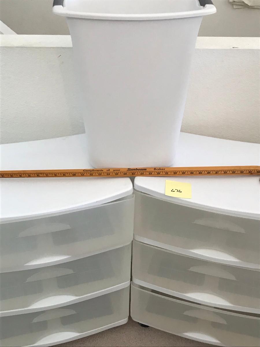 Lot of 2 Rubbermade rolling drawers + Trash can