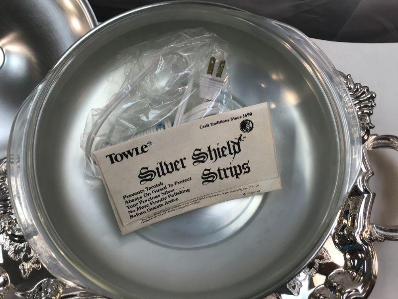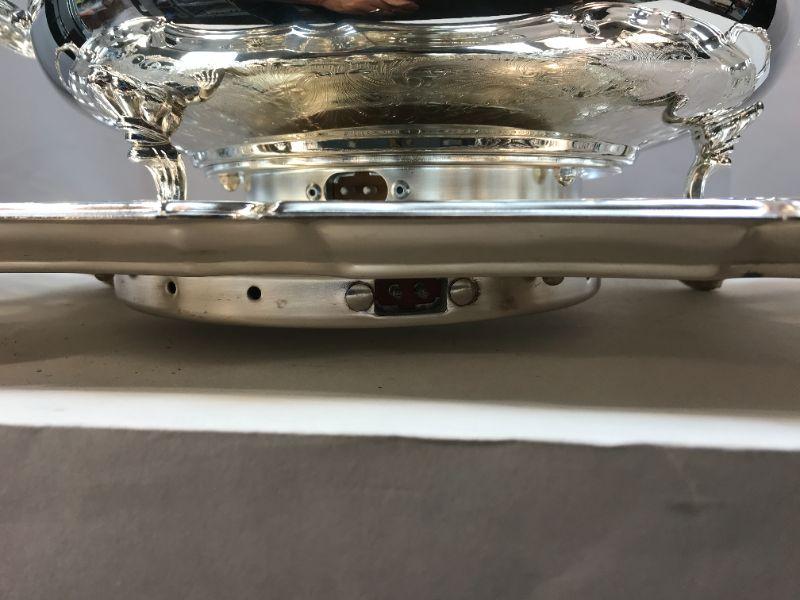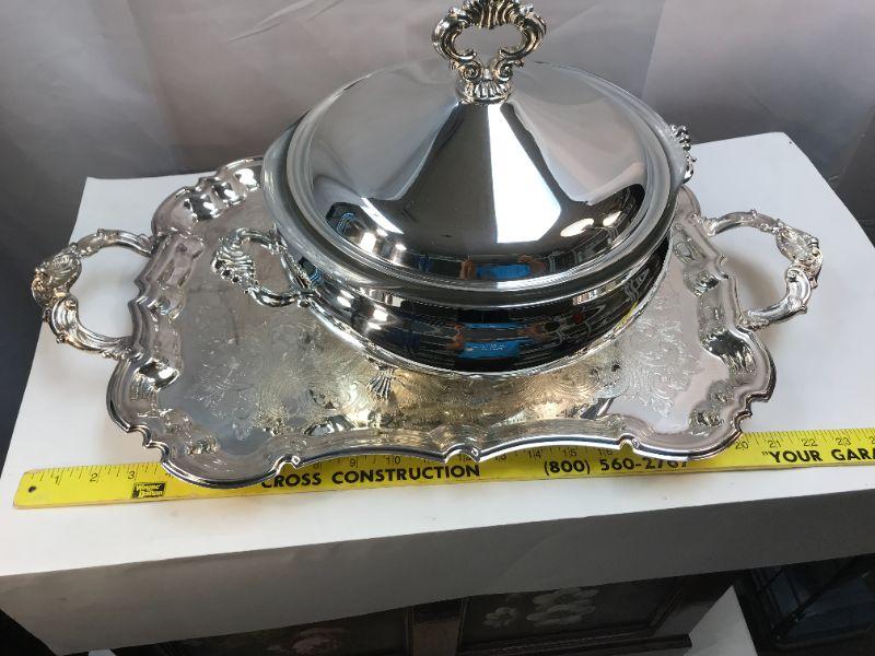 Silverplate warming tray and round server. Both are electric. Good condition. Untested.