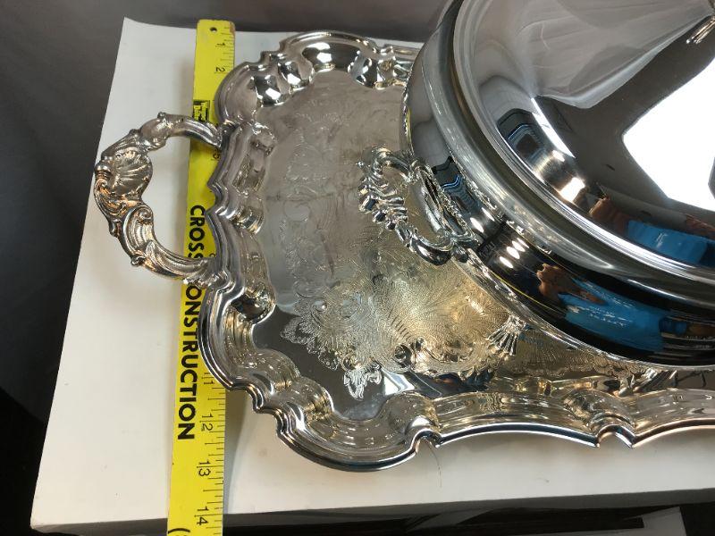 lot of 2 silver plate serving dishes with warming chafing feature YD#022-0097