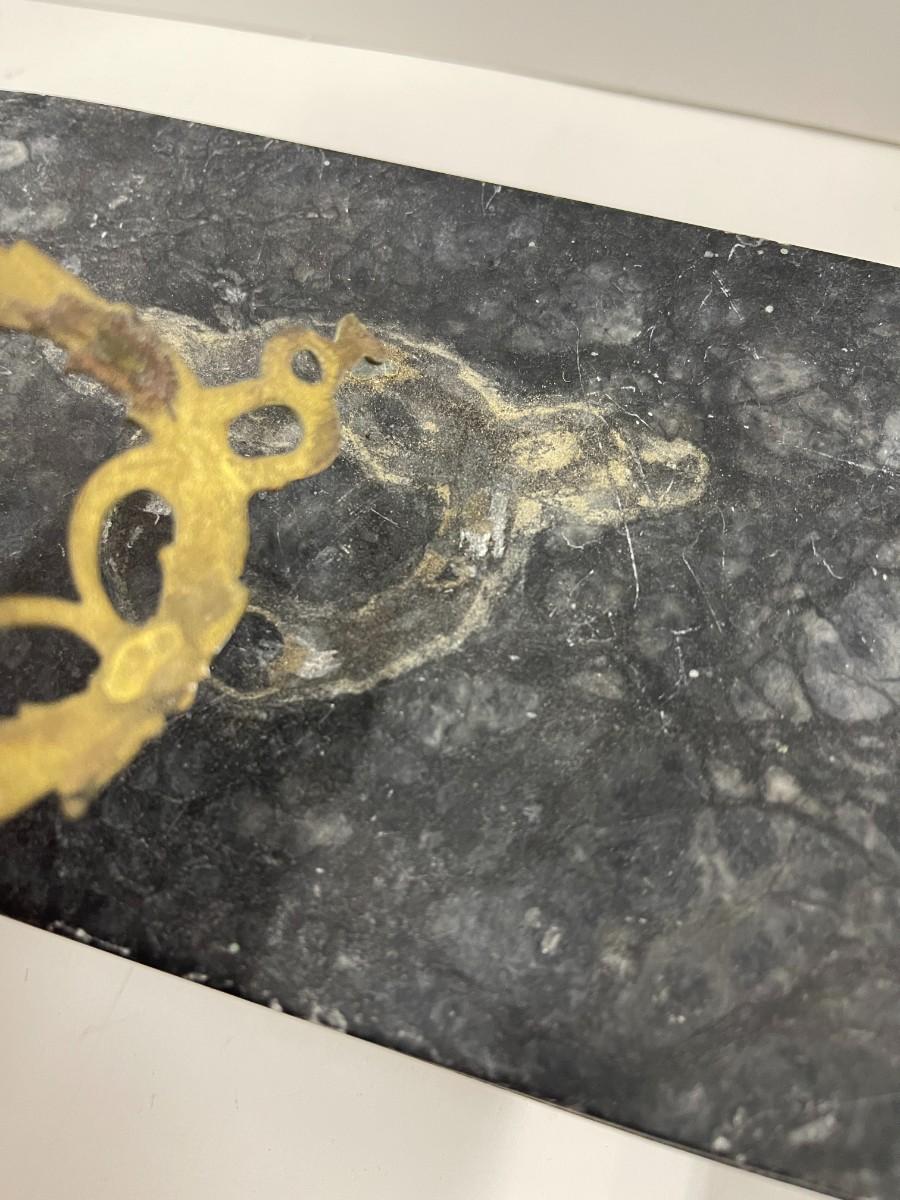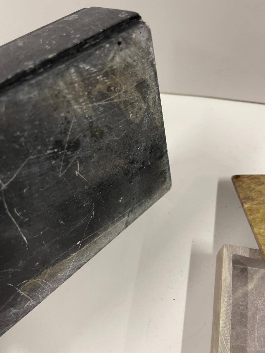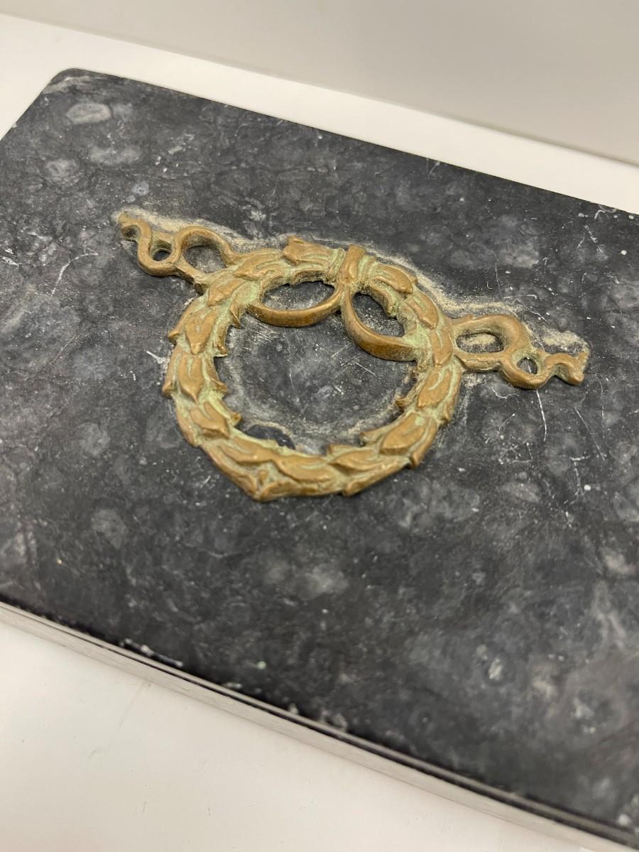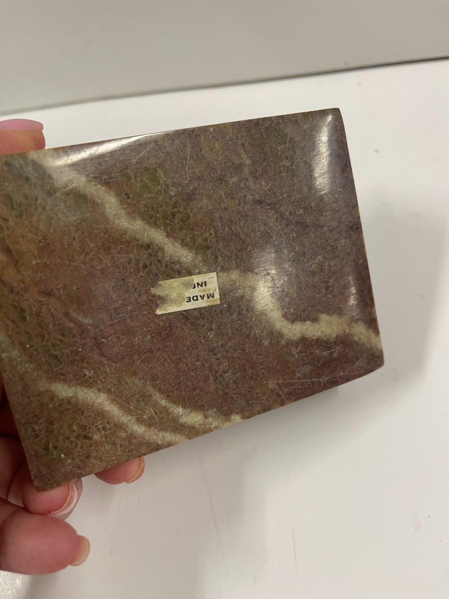 Lot of 2 Stone Trinket Boxes. The decorative ornament on the darker box has fallen off (glue dried out). Just needs to be reglued.