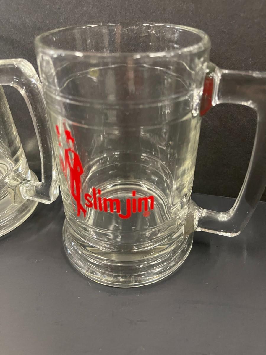 Set of 2 vintage 1970's Slim Jim glass mugs, excellent condition. 5 1/4".