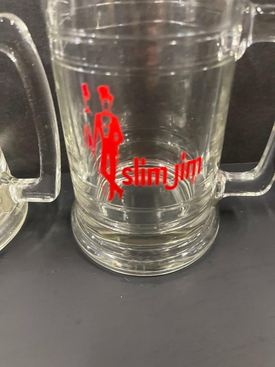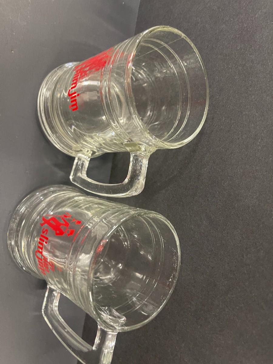 Set of 2 vintage 1970's Slim Jim glass mugs, excellent condition. 5 1/4".