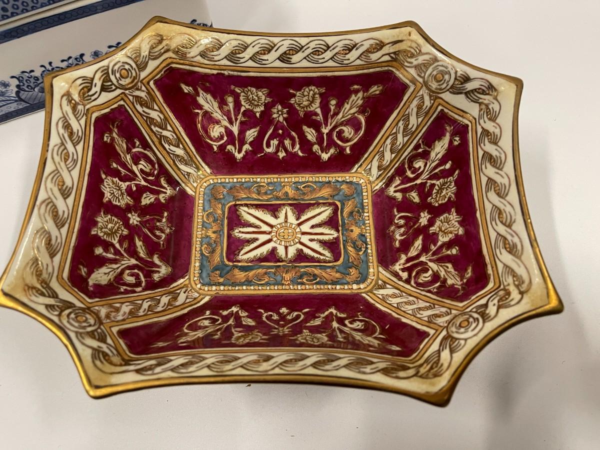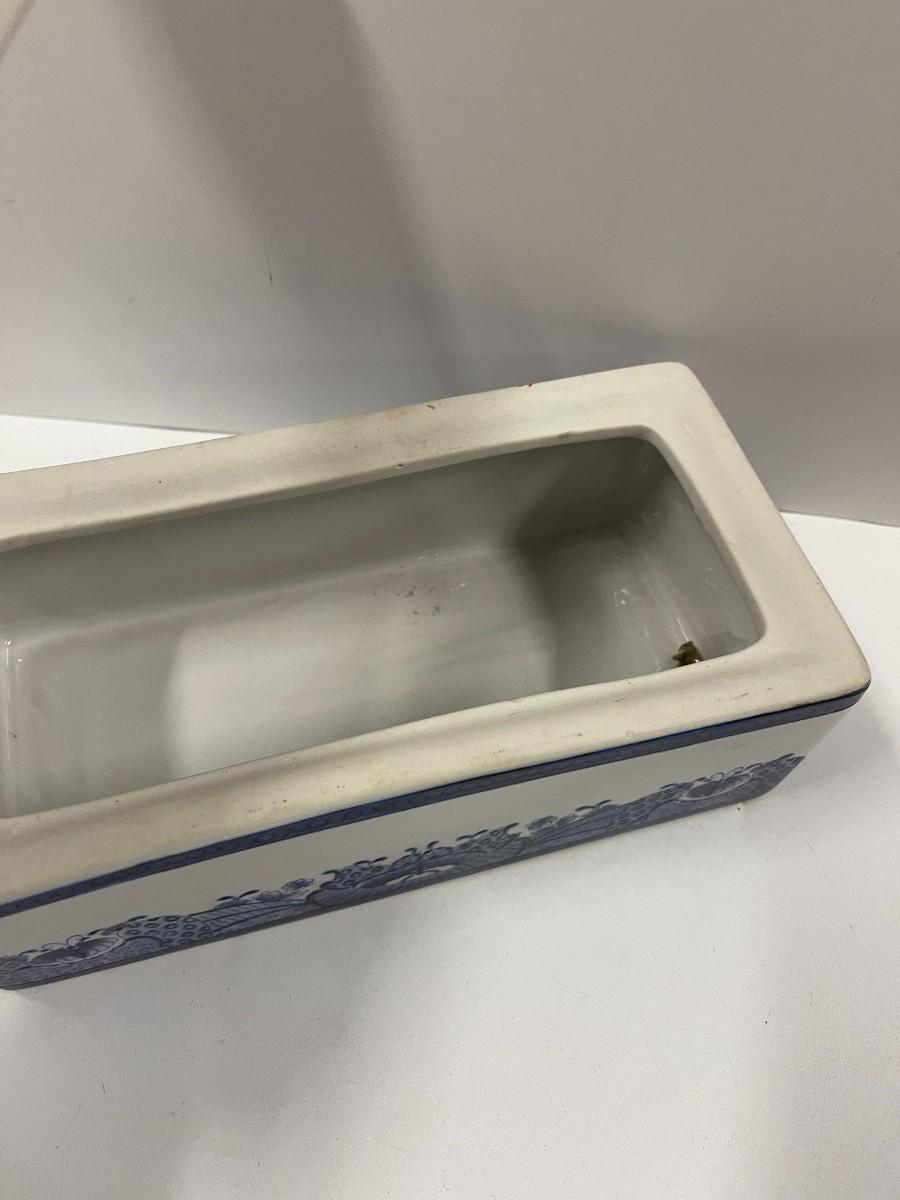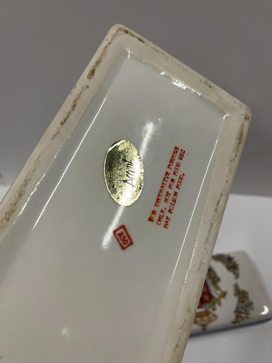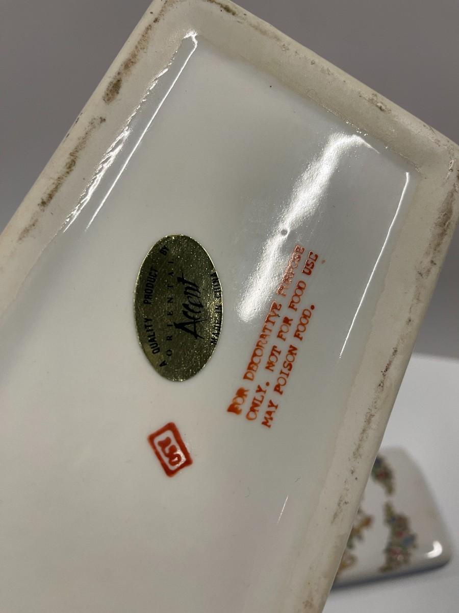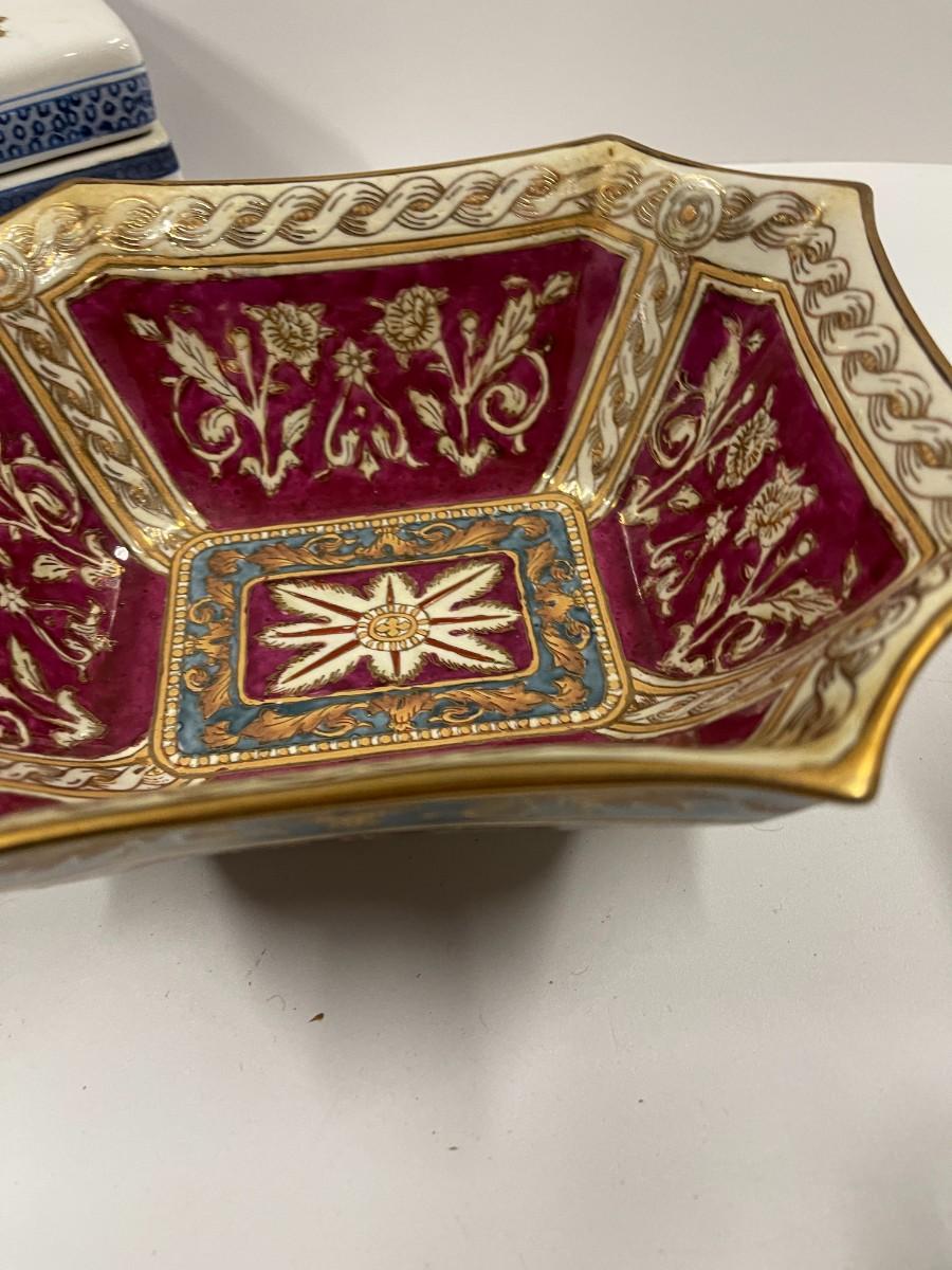Lot of 2 vintage porcelain pieces: Andrea by Sadek bowl (7" x 9") and Oriental Accent rectangular jar with lid (4" x 8")