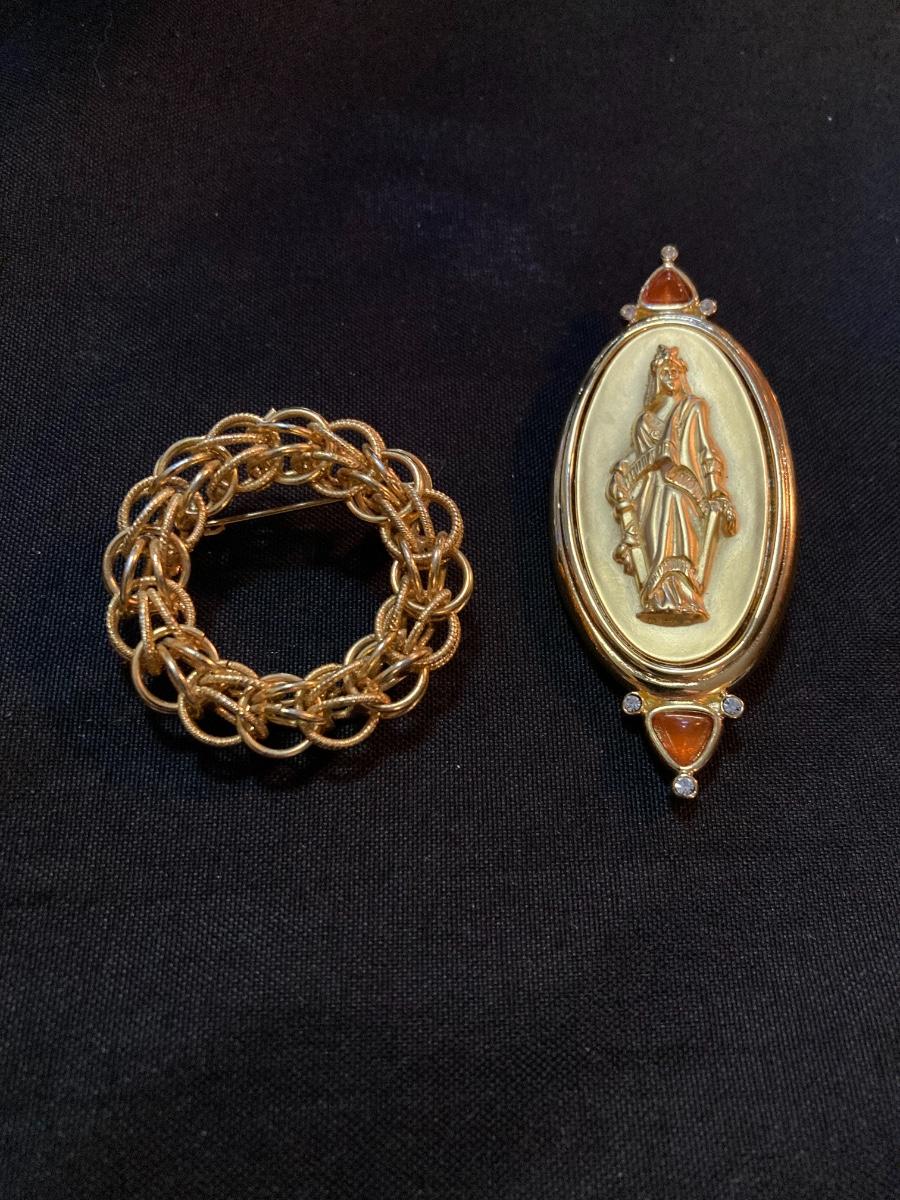 Lot of 2 Vintage Brooch Pins with Religious 3” and 1” each.