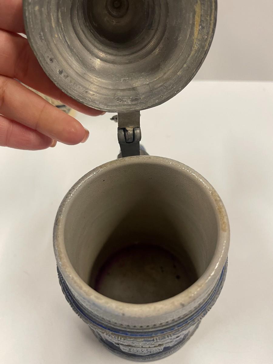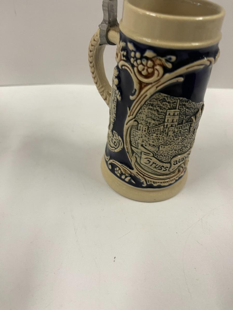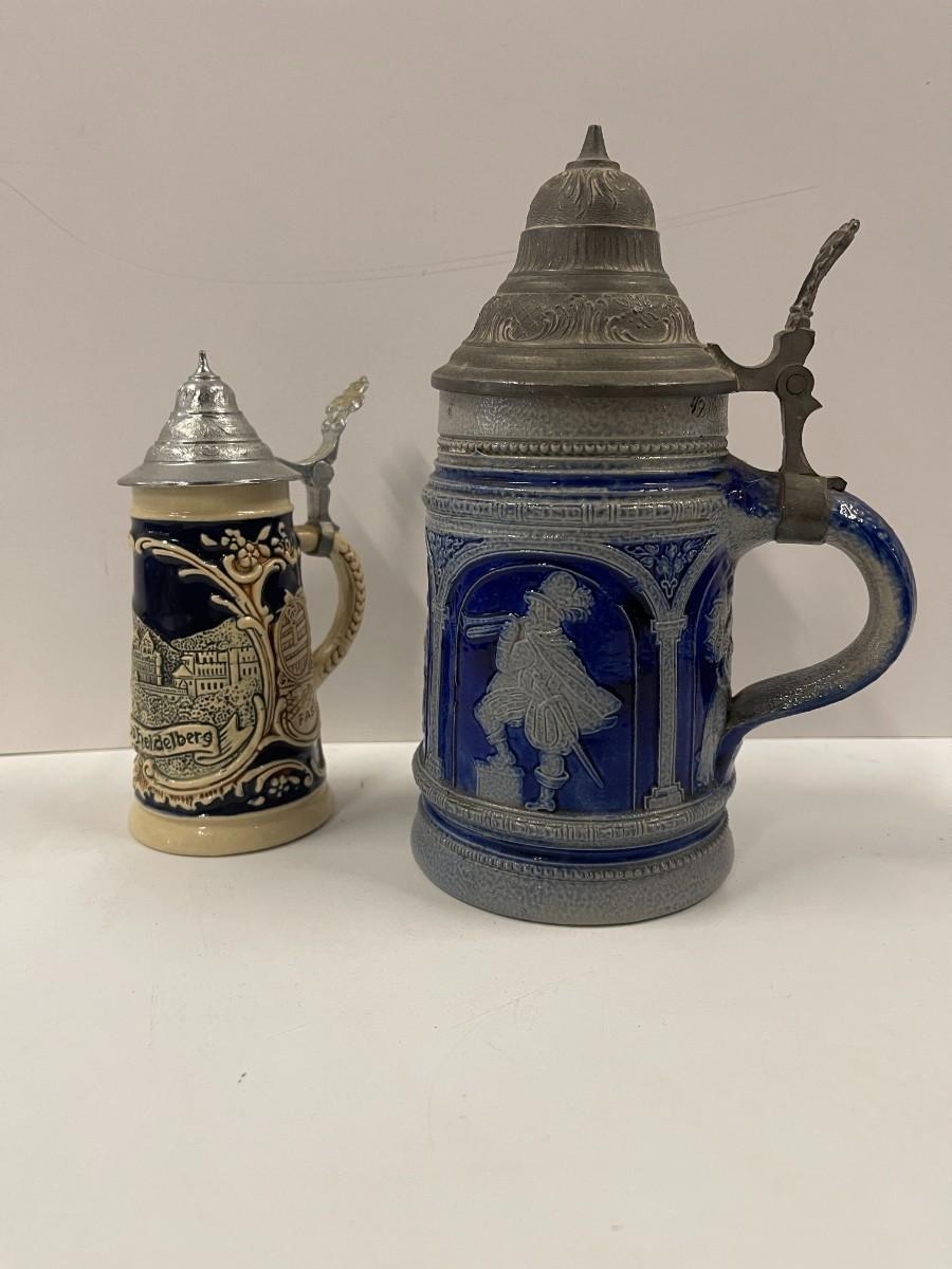 Lot of 2 vintage Beer steins. One is 7 1/2" and unmarked. The other is 5 1/2" and is marked by the maker on the bottom.