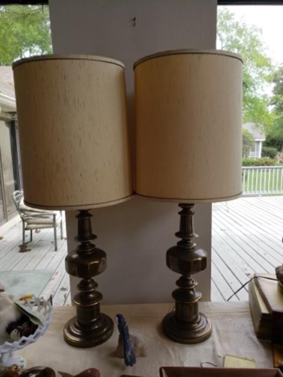Lot of 2 Vintage Ethan Allen Brass Lamps with shades
