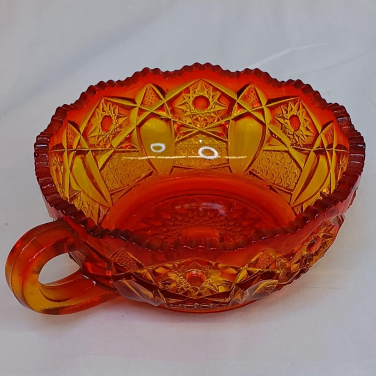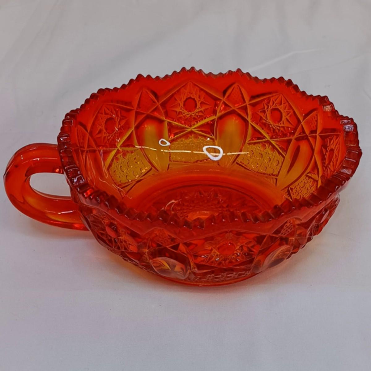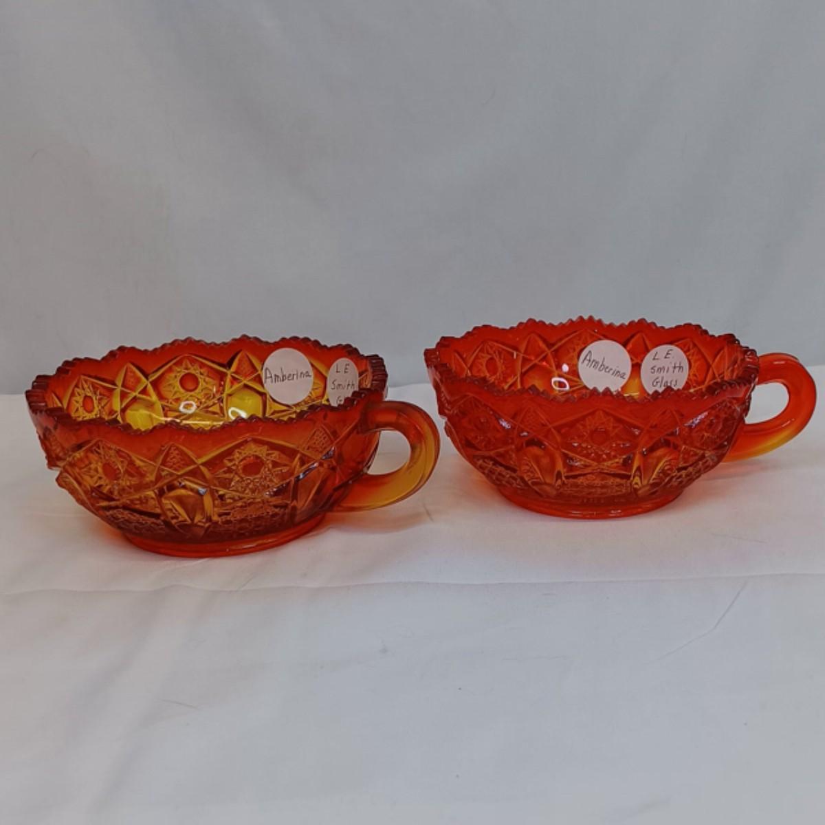 This is a vintage lot of 2 L.E. Smith glass amberina dishes w/ handle. Both pieces are in very good, like new condition. They are free of chips, cracks or other damage.