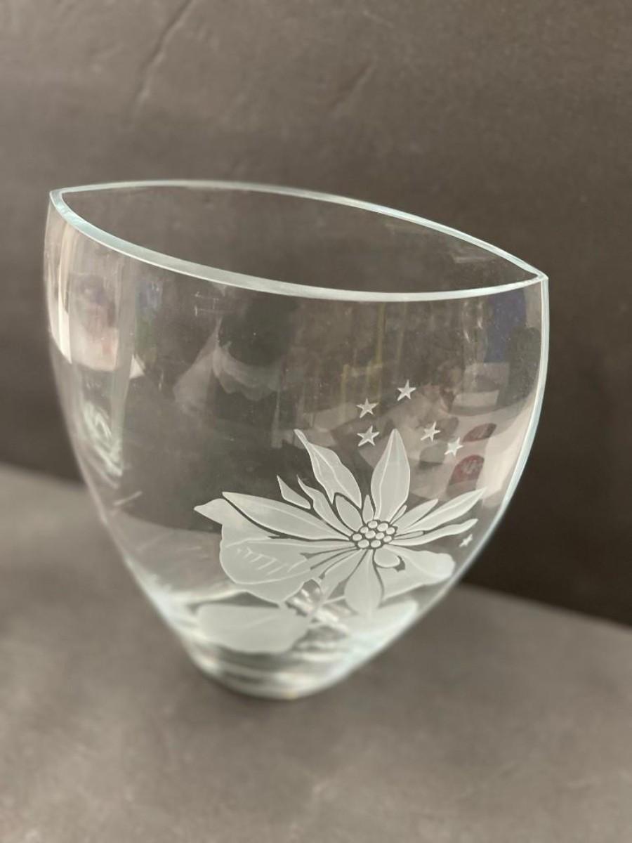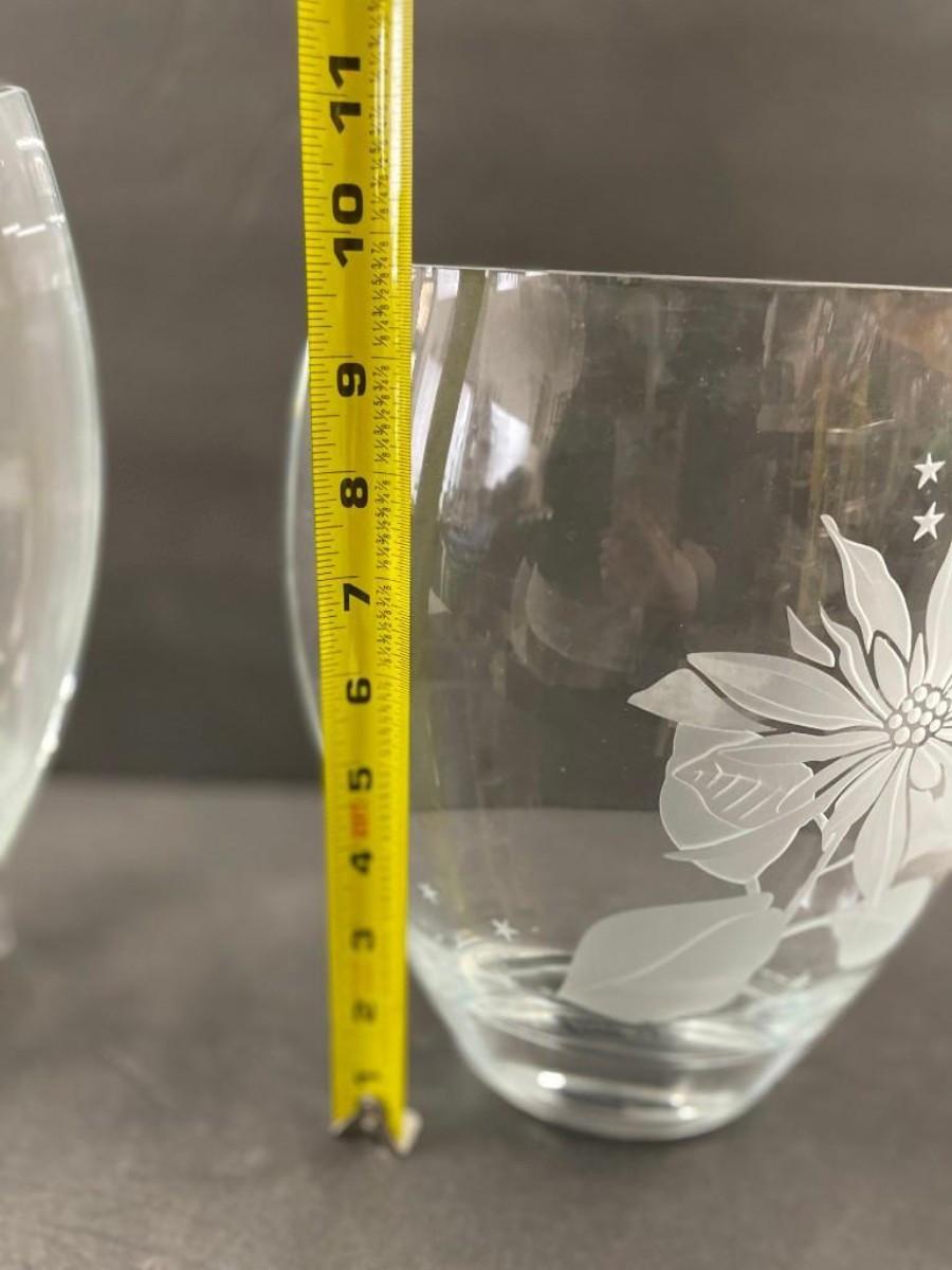 Lot of 2 Vintage Mikasa Poinsettia Glass Vases