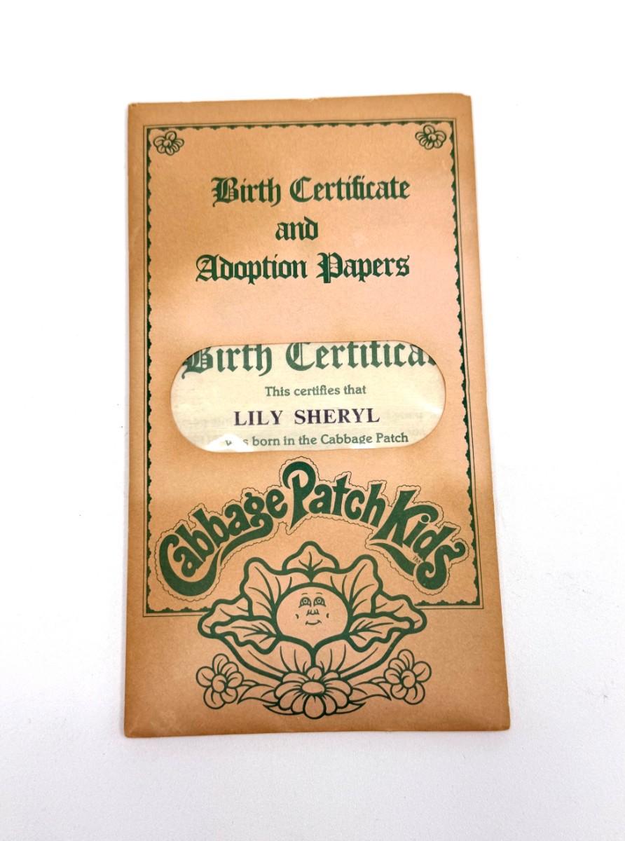 The original box and birth certificate appears to go with the blond girl.