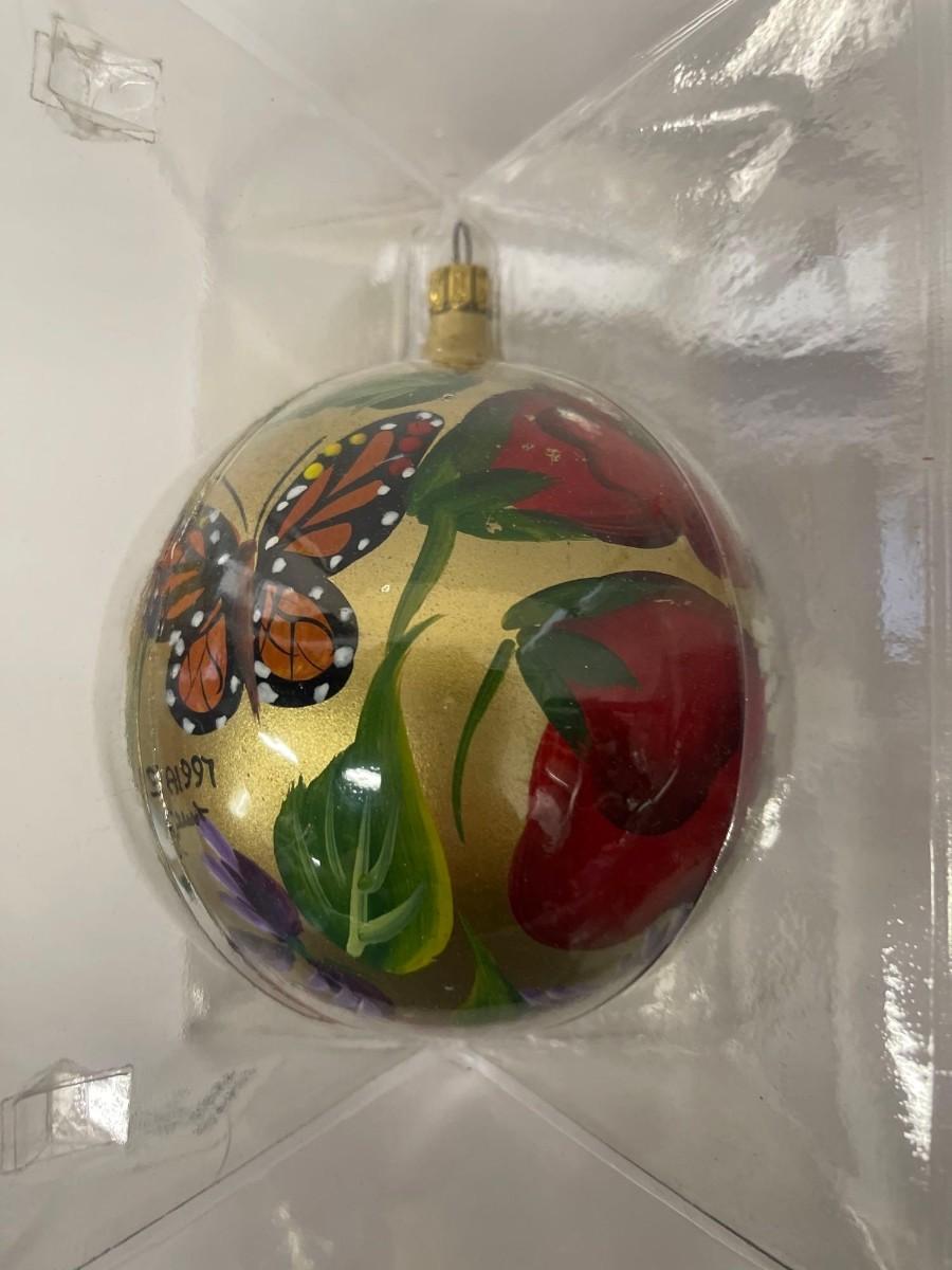 Lot of 2 Vintage Saks Fifth Ave Hand Painted Christmas Ornaments Circa 1997 & 2002