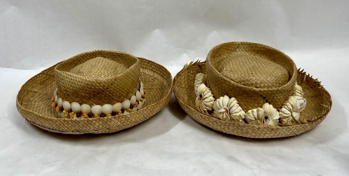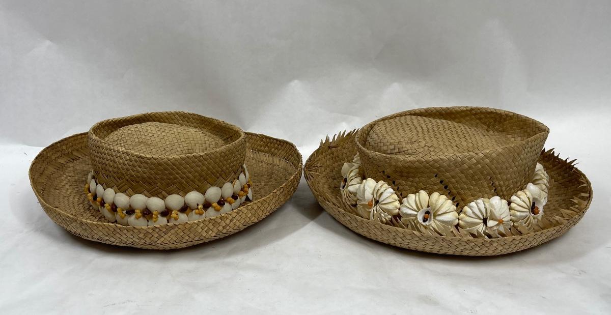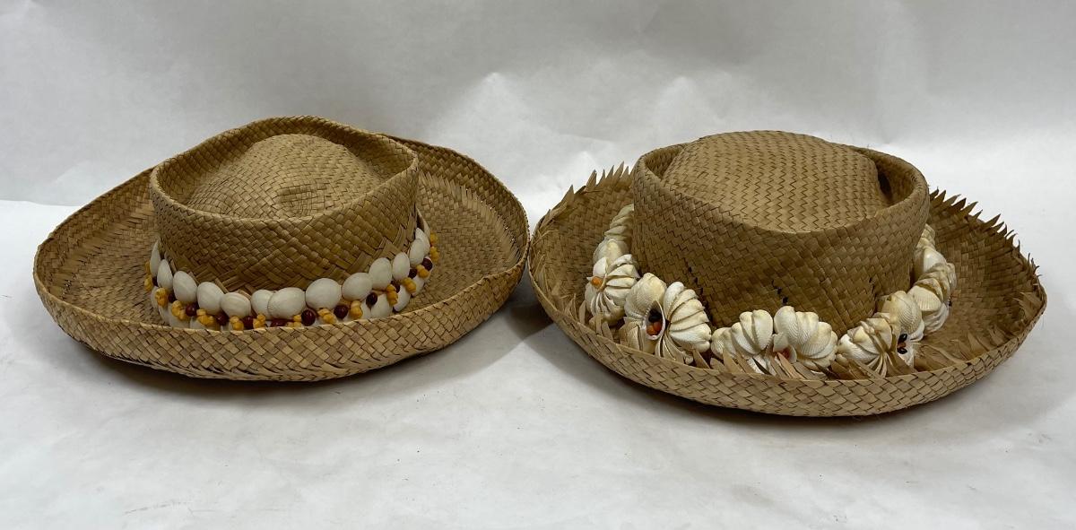 Lot of 2 Vintage Straw Hats with Shell Band Women's size