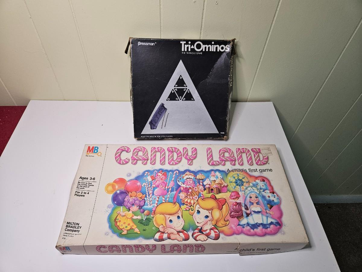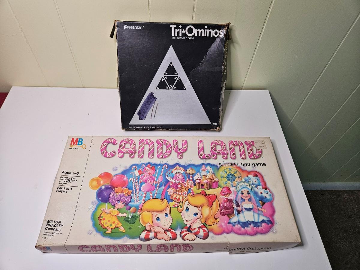 Lot of 2 Vintage "Tri-Ominos" & "Candy Land" Board Games - Complete