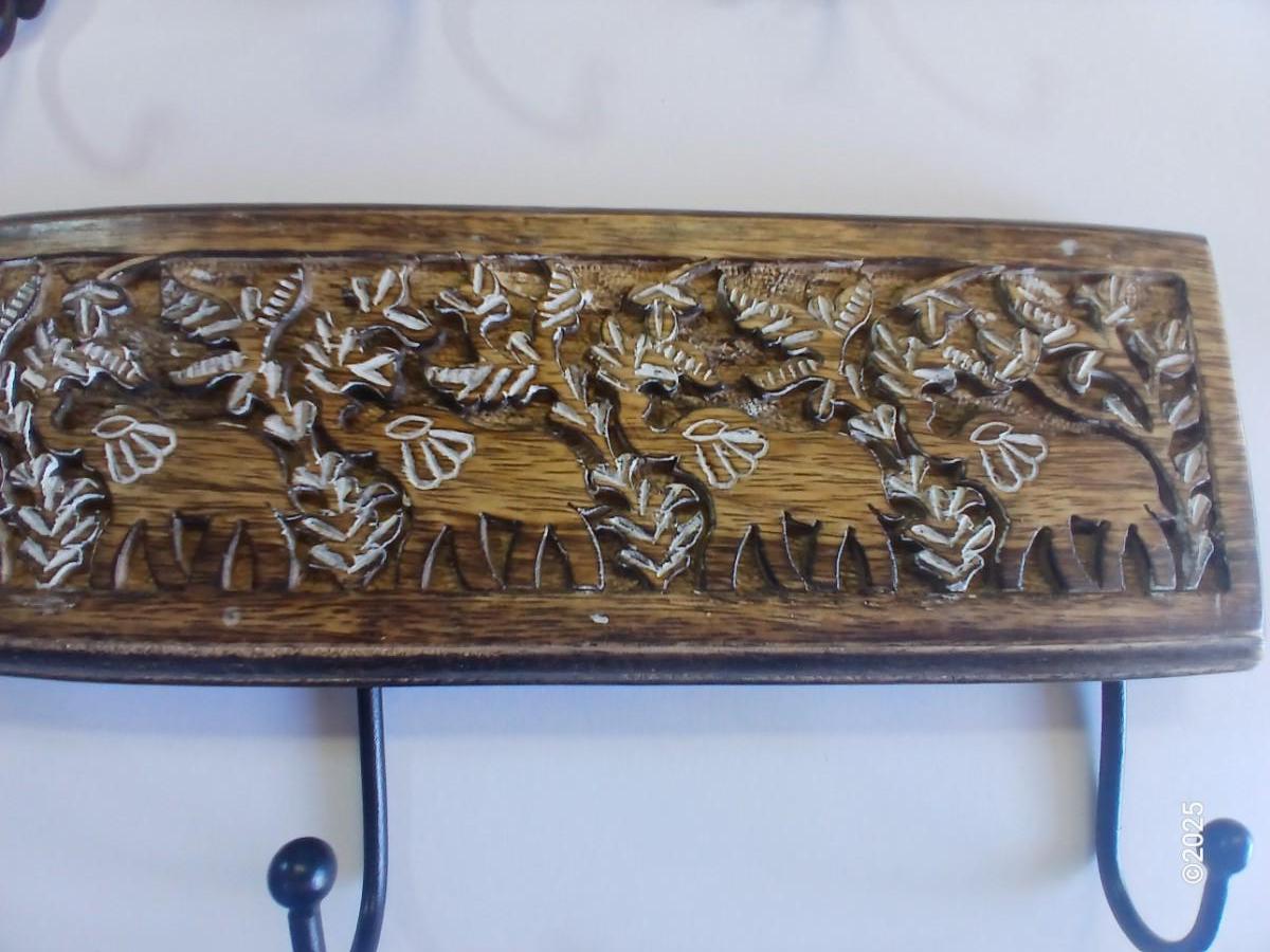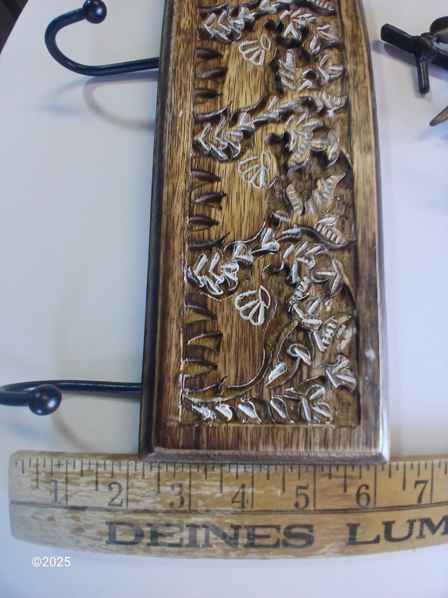 Carved Wood Floral Hook Rack
