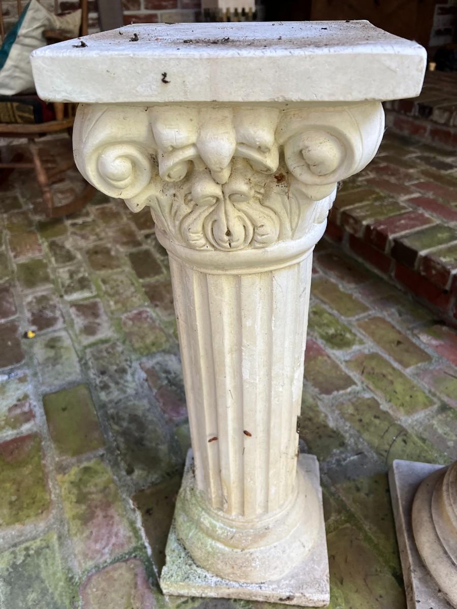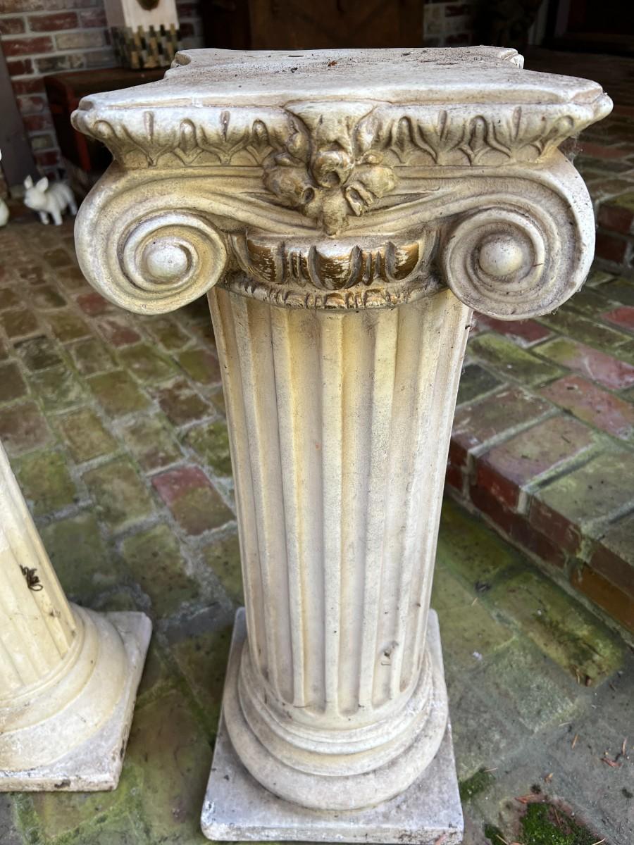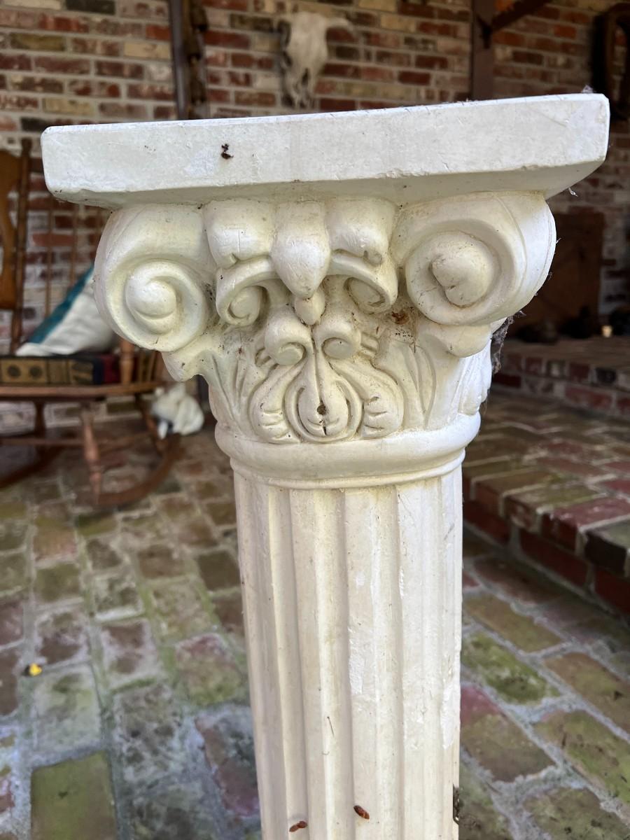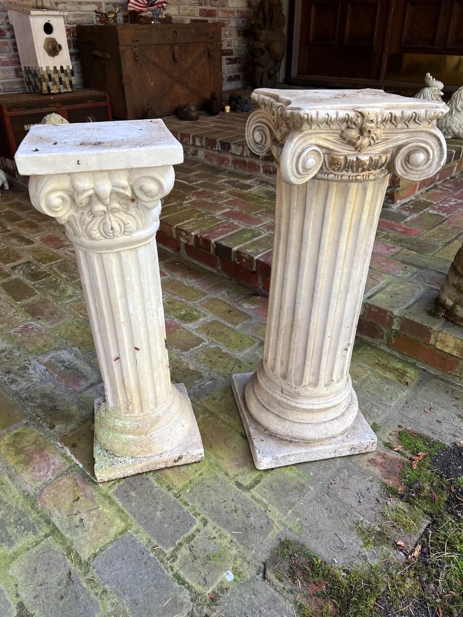 Great lot of two white pillars for your yard or patio space! Or you can clean them up for a lovely indoor plant stand. Add a touch of classic elegance to any space. In good condition, with signs of wear (as shown in photos).
