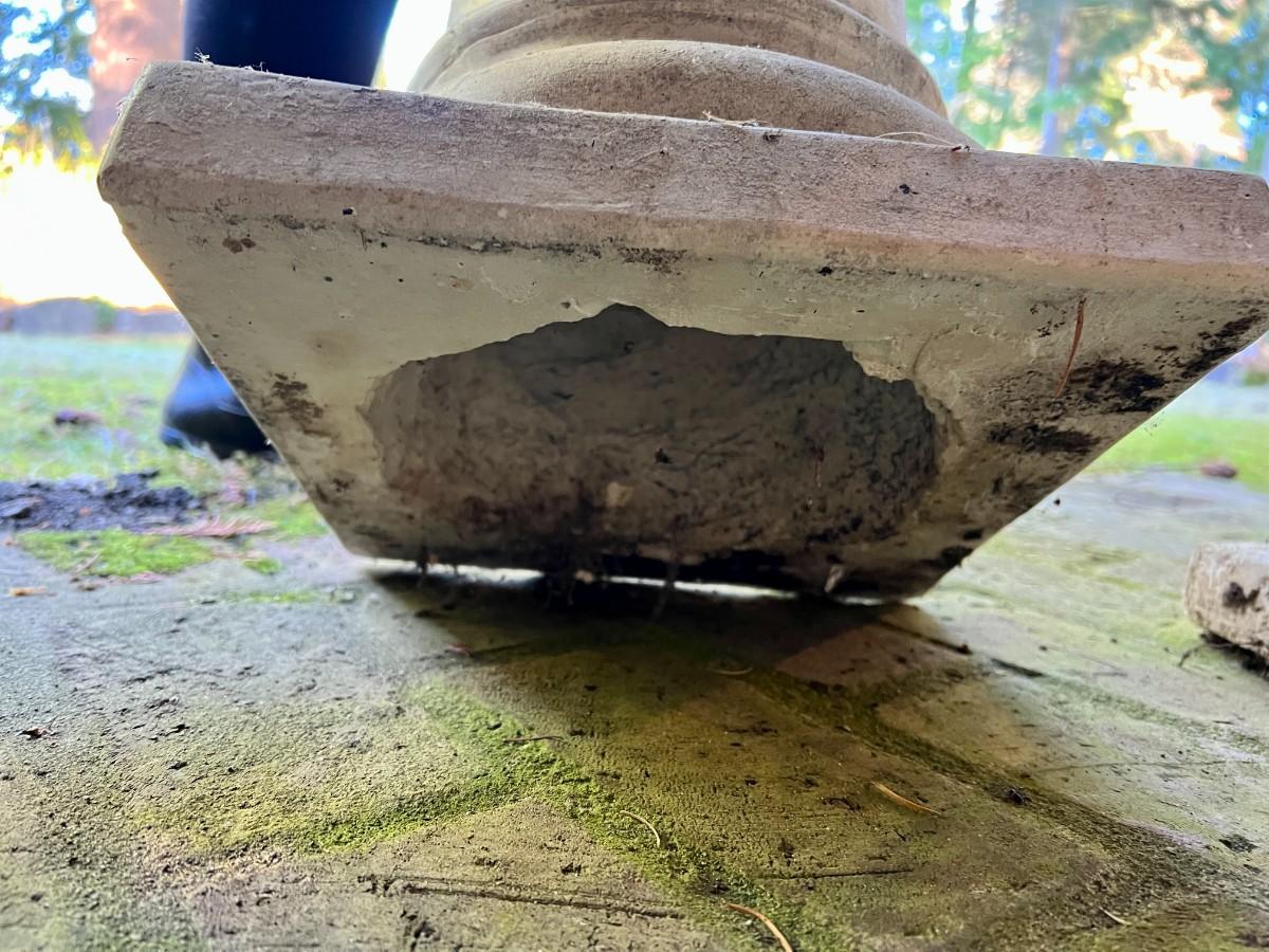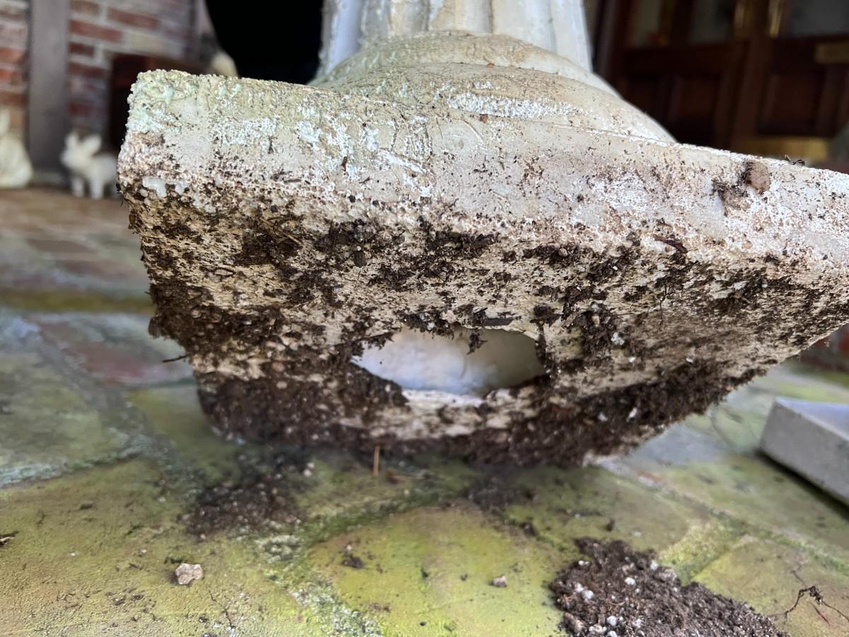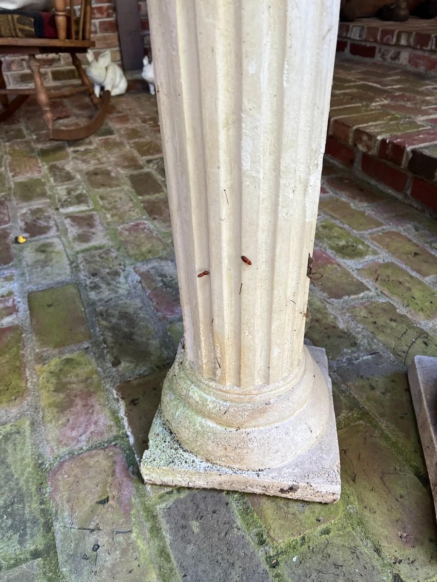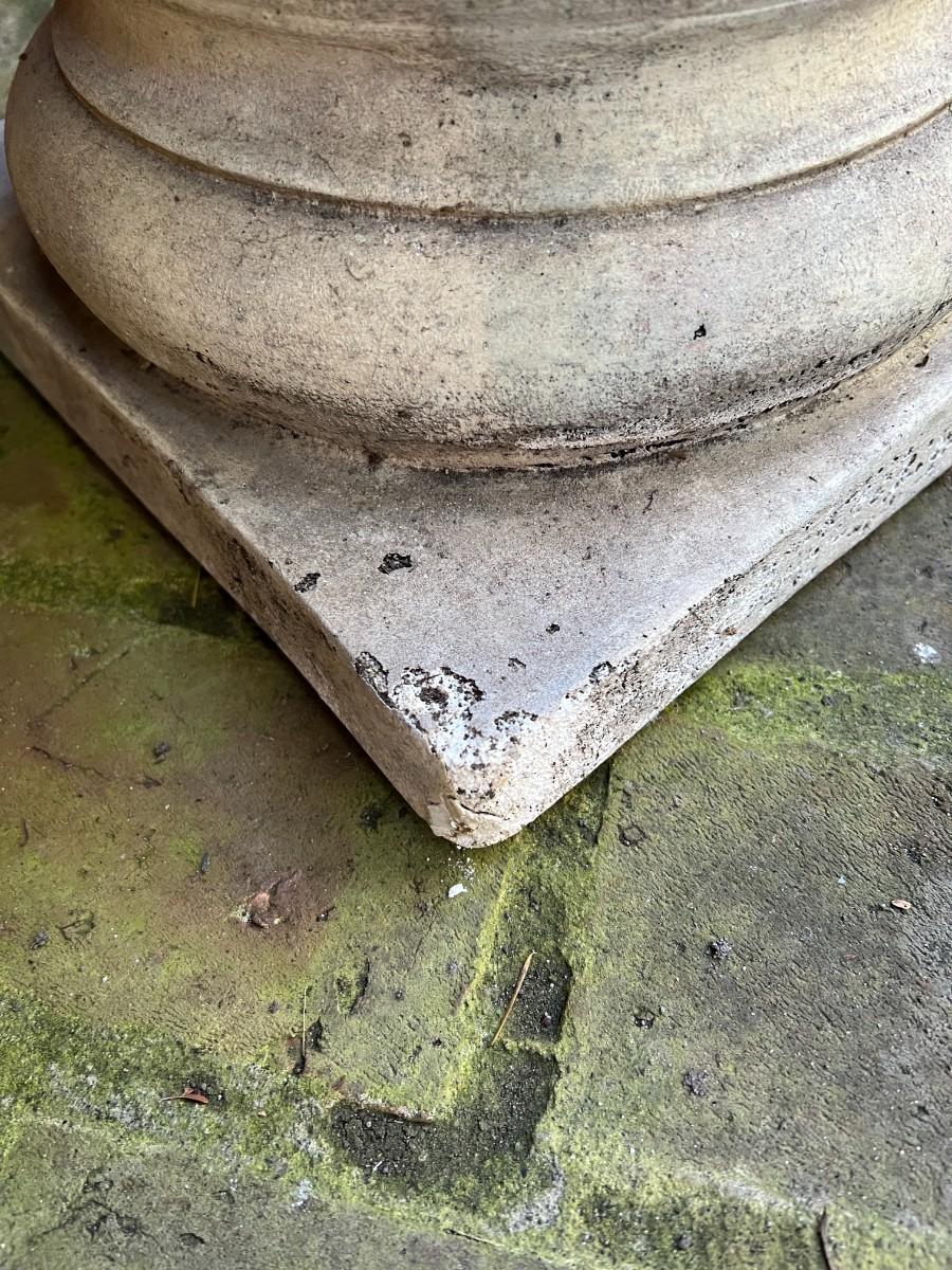 Great lot of two white pillars for your yard or patio space! Or you can clean them up for a lovely indoor plant stand. Add a touch of classic elegance to any space. In good condition, with signs of wear (as shown in photos).