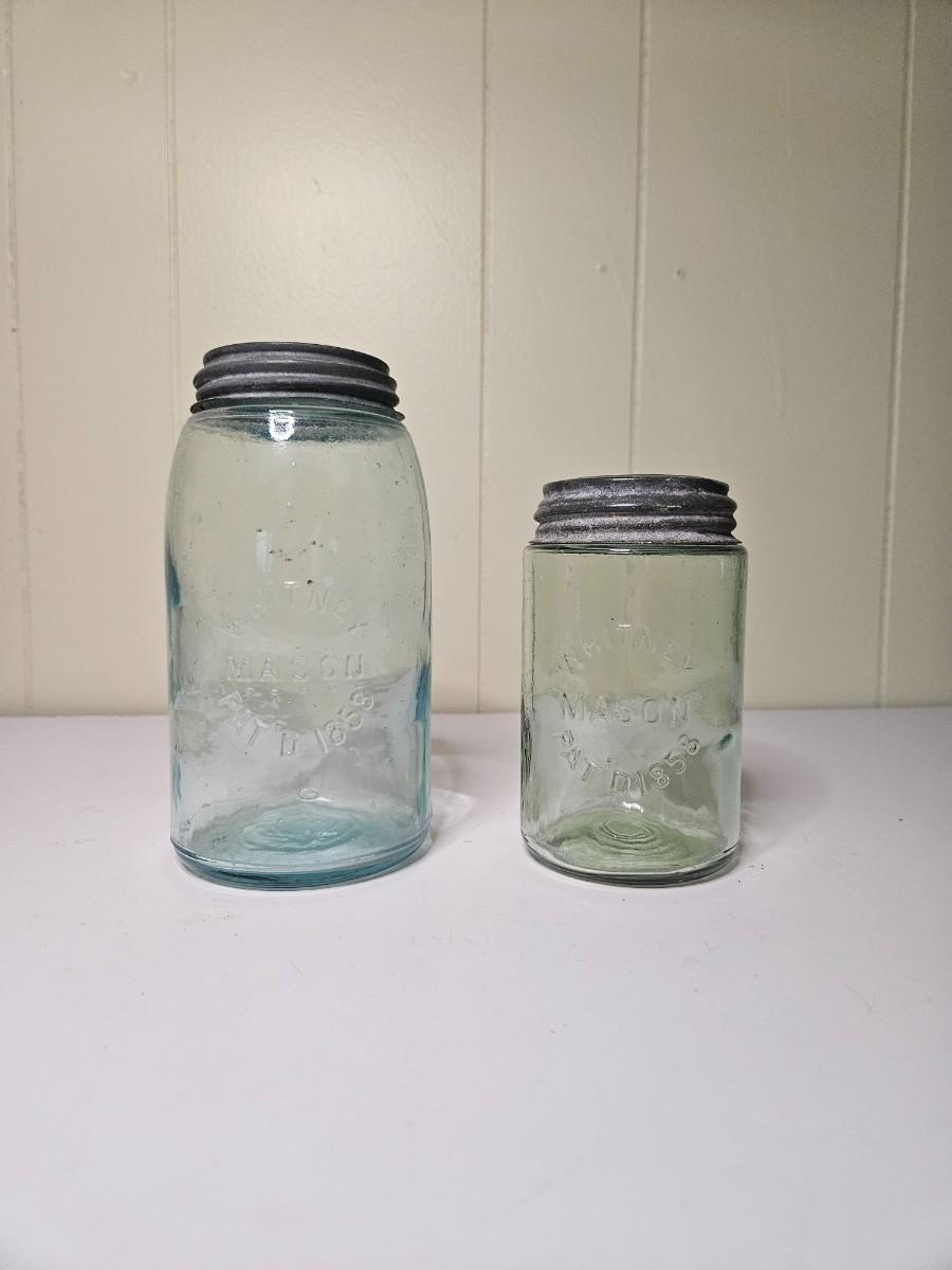 Lot of 2 Whitney Glass Mason Jars Glassboro, NJ