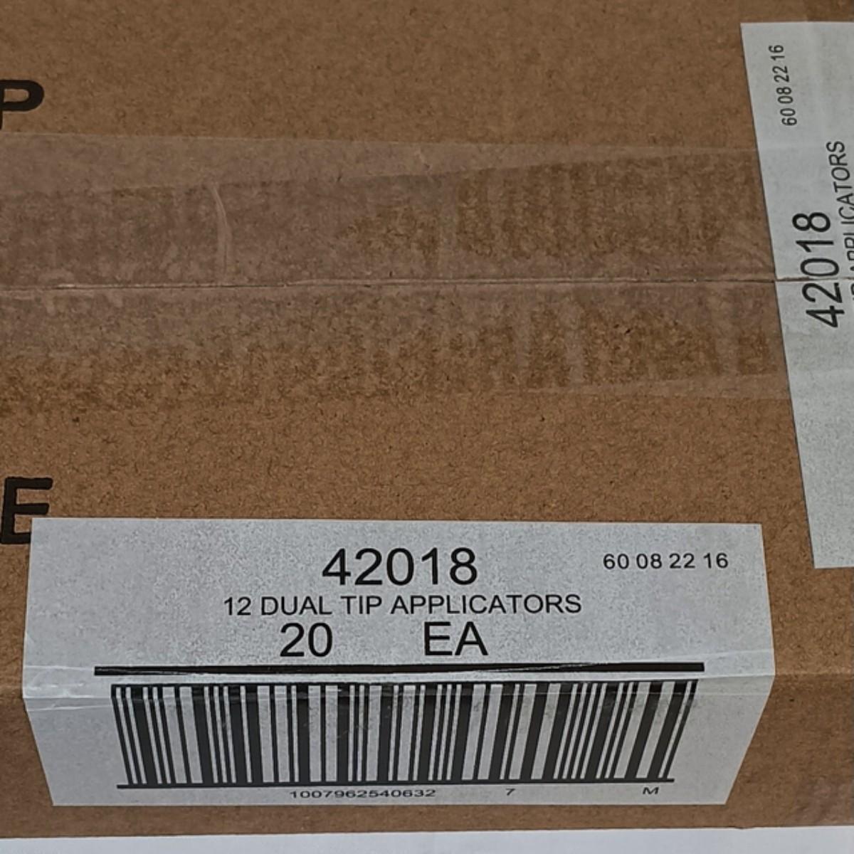 This is a factory sealed box of 20 individual factory sealed packages of dual tip applicators. Each sealed retail package includes 12 dual tip applicators. This lot includes a total of 240 individual dual tip applicators.