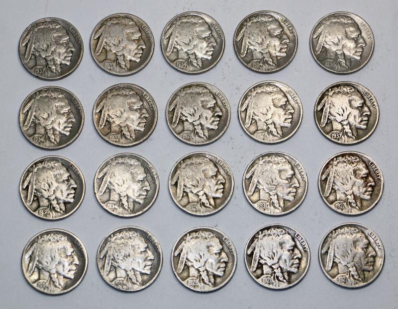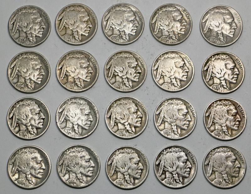 Lot of 20 Pre-War Buffalo Nickles / Indian Head Nickles Lot.