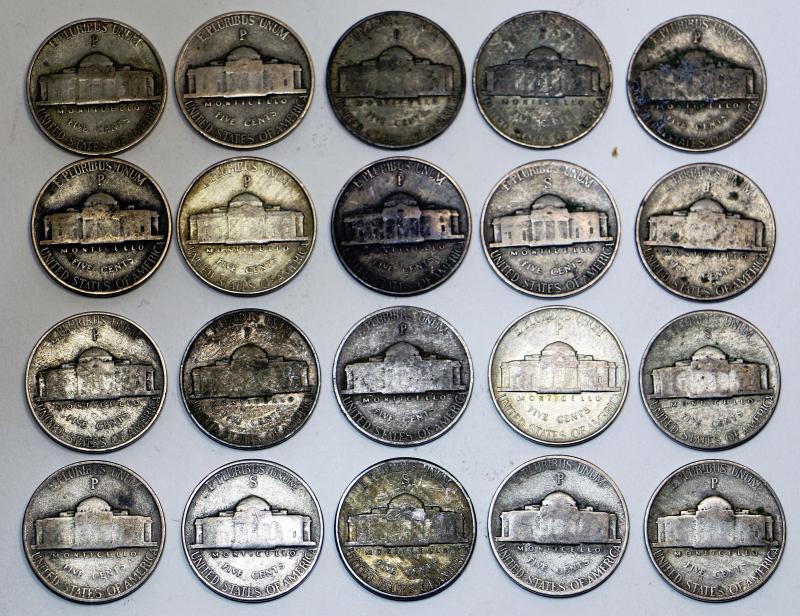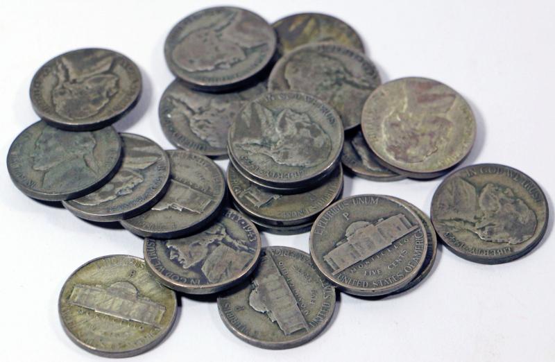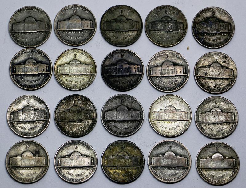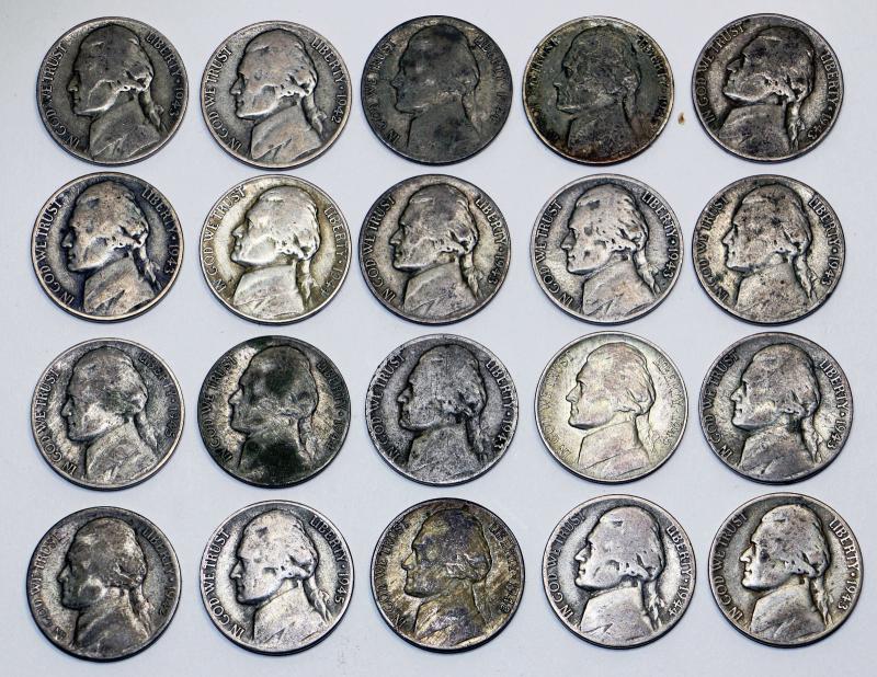 Lot of 20 Silver Nickles - WWII Era (1942-1945).