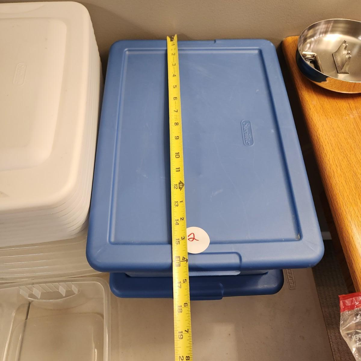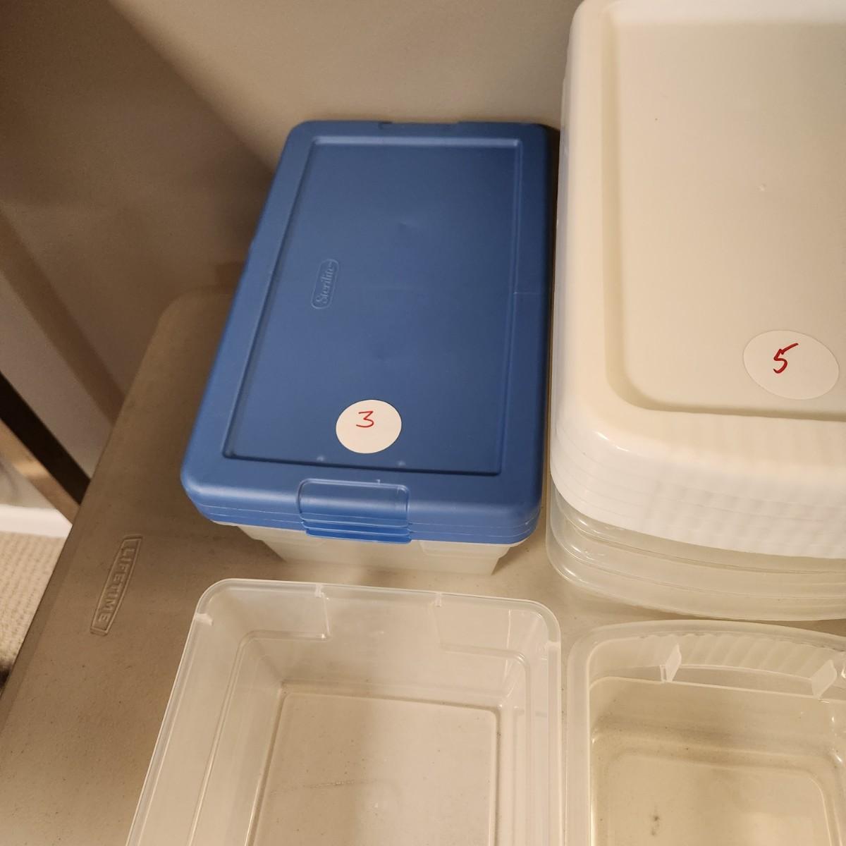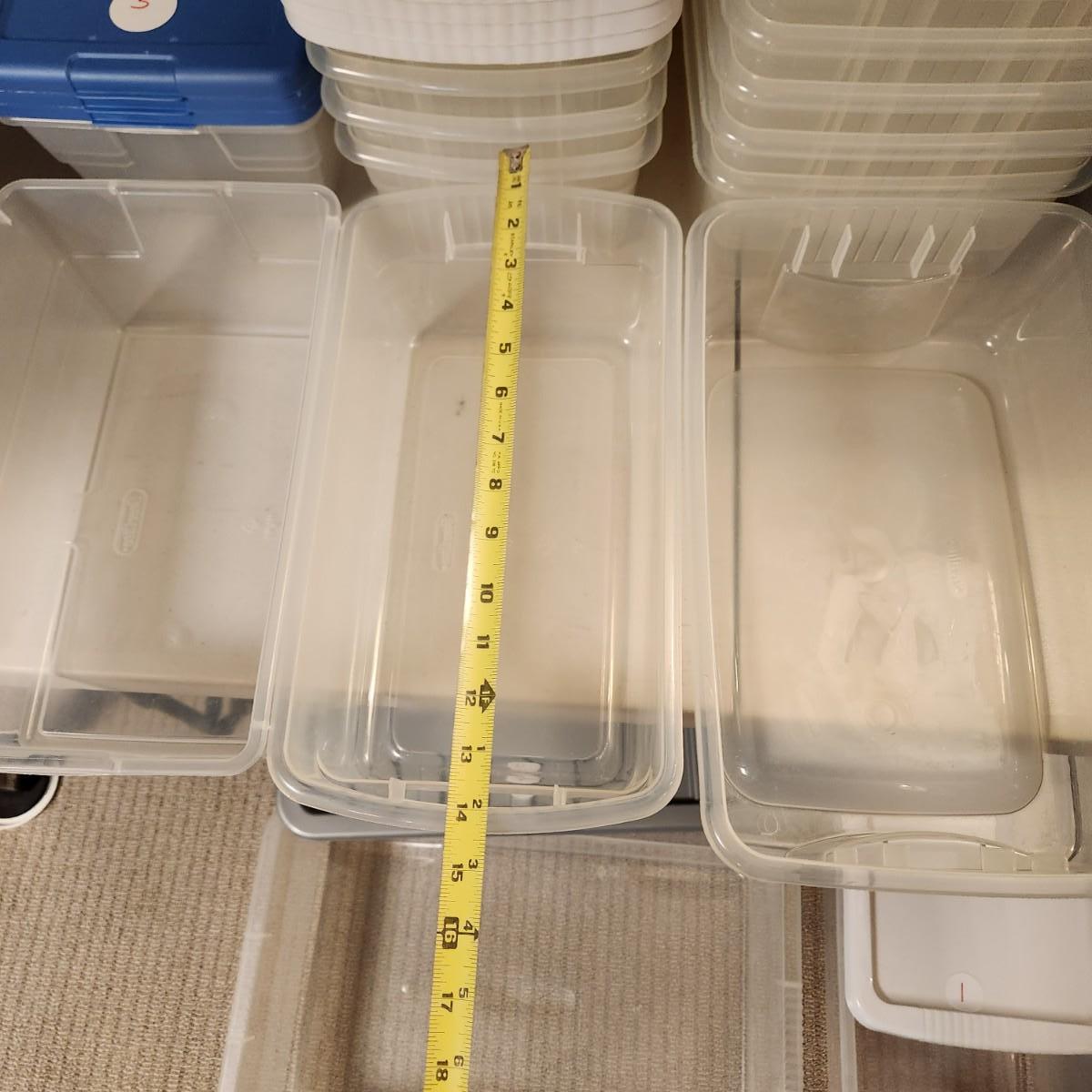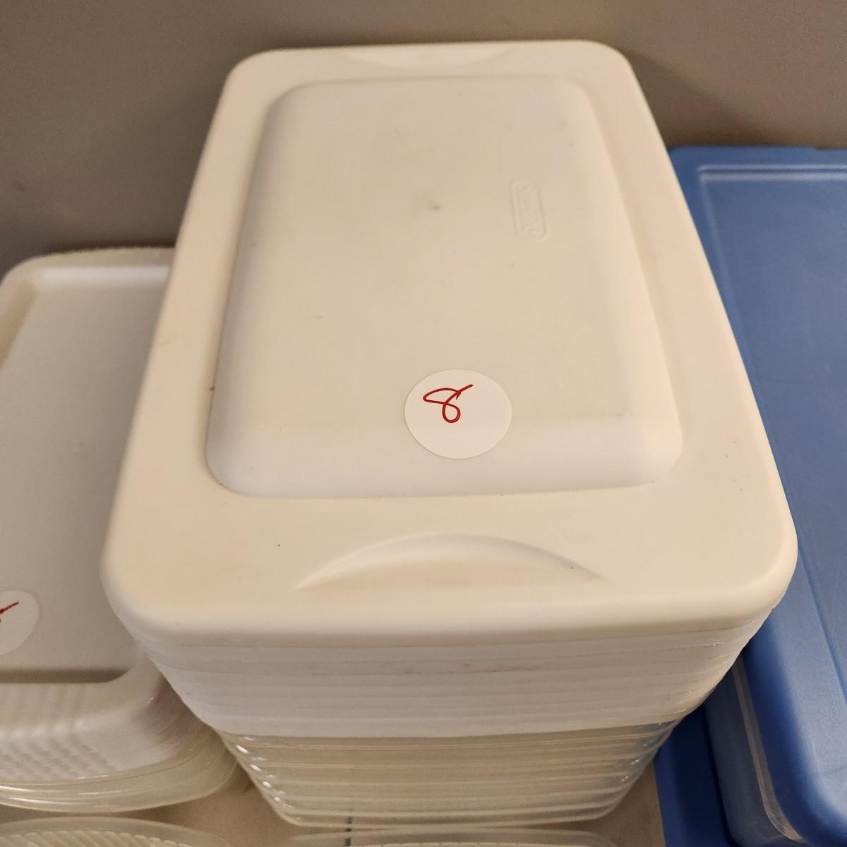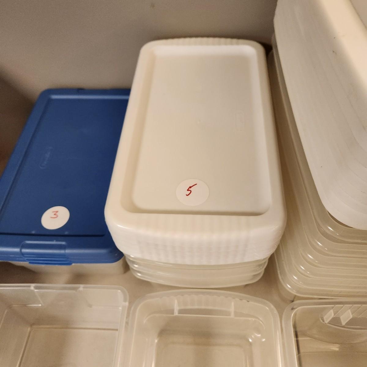 Lot of 21 Plastic Storage Containers with lids 6 different Sizes