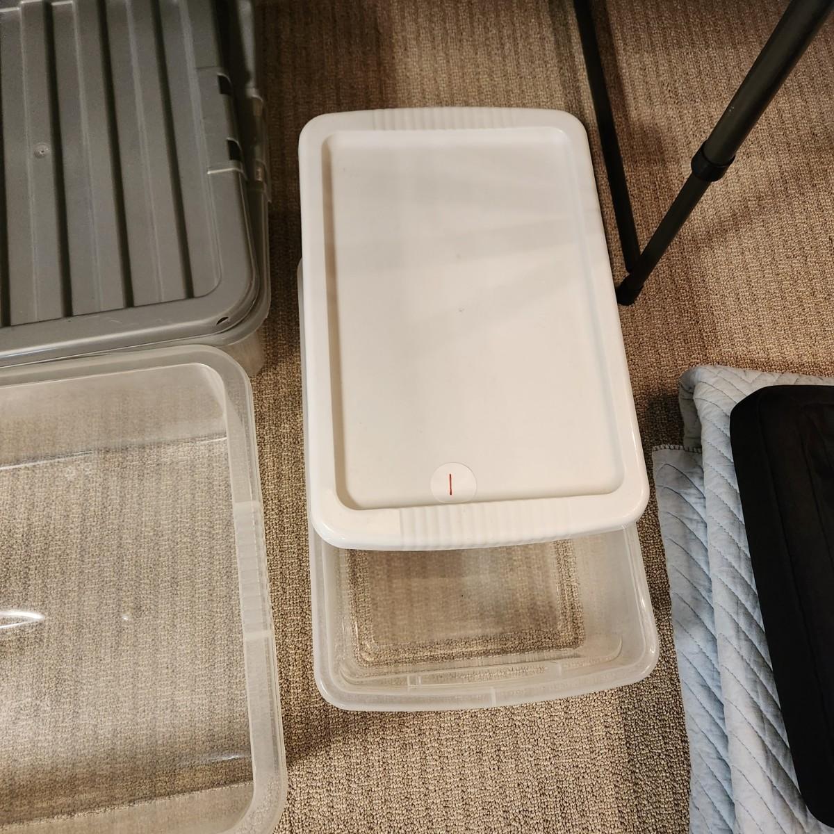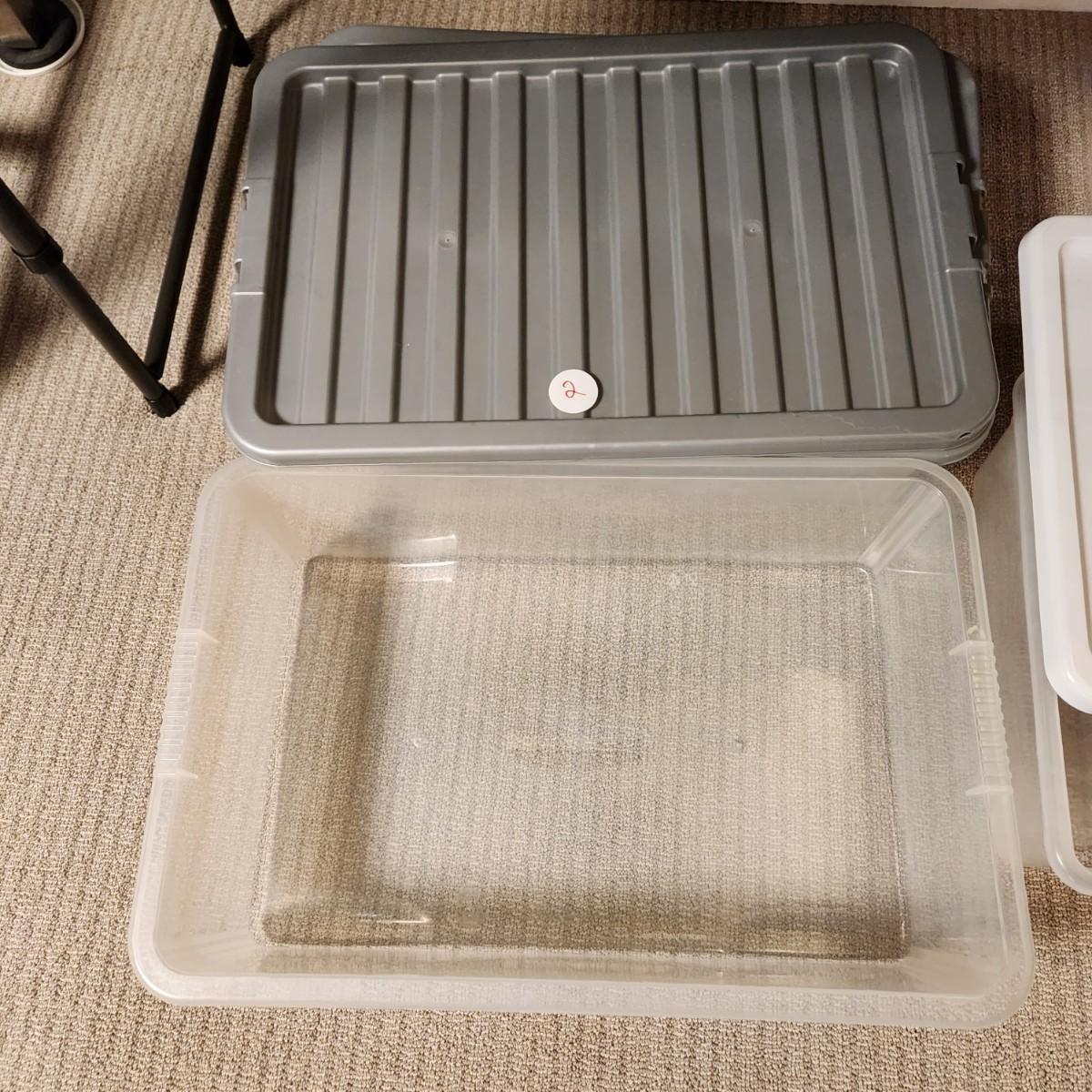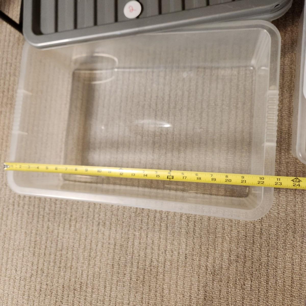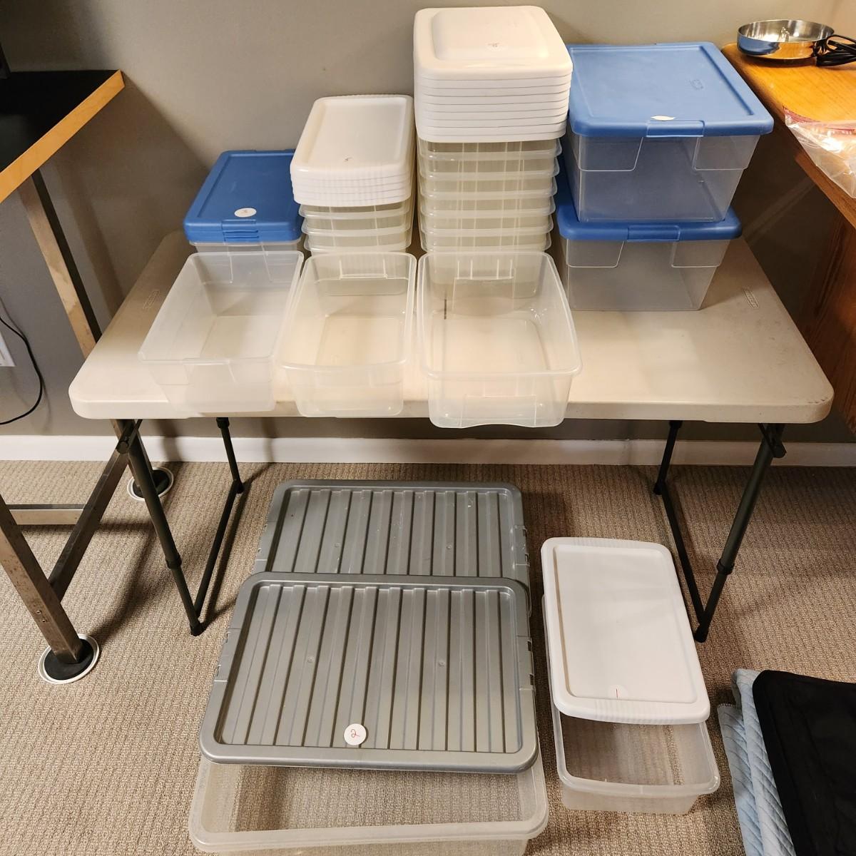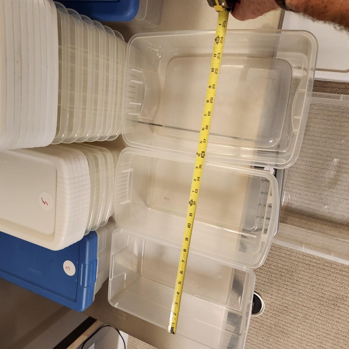 Lot of 21 Plastic Storage Containers with lids 6 different Sizes