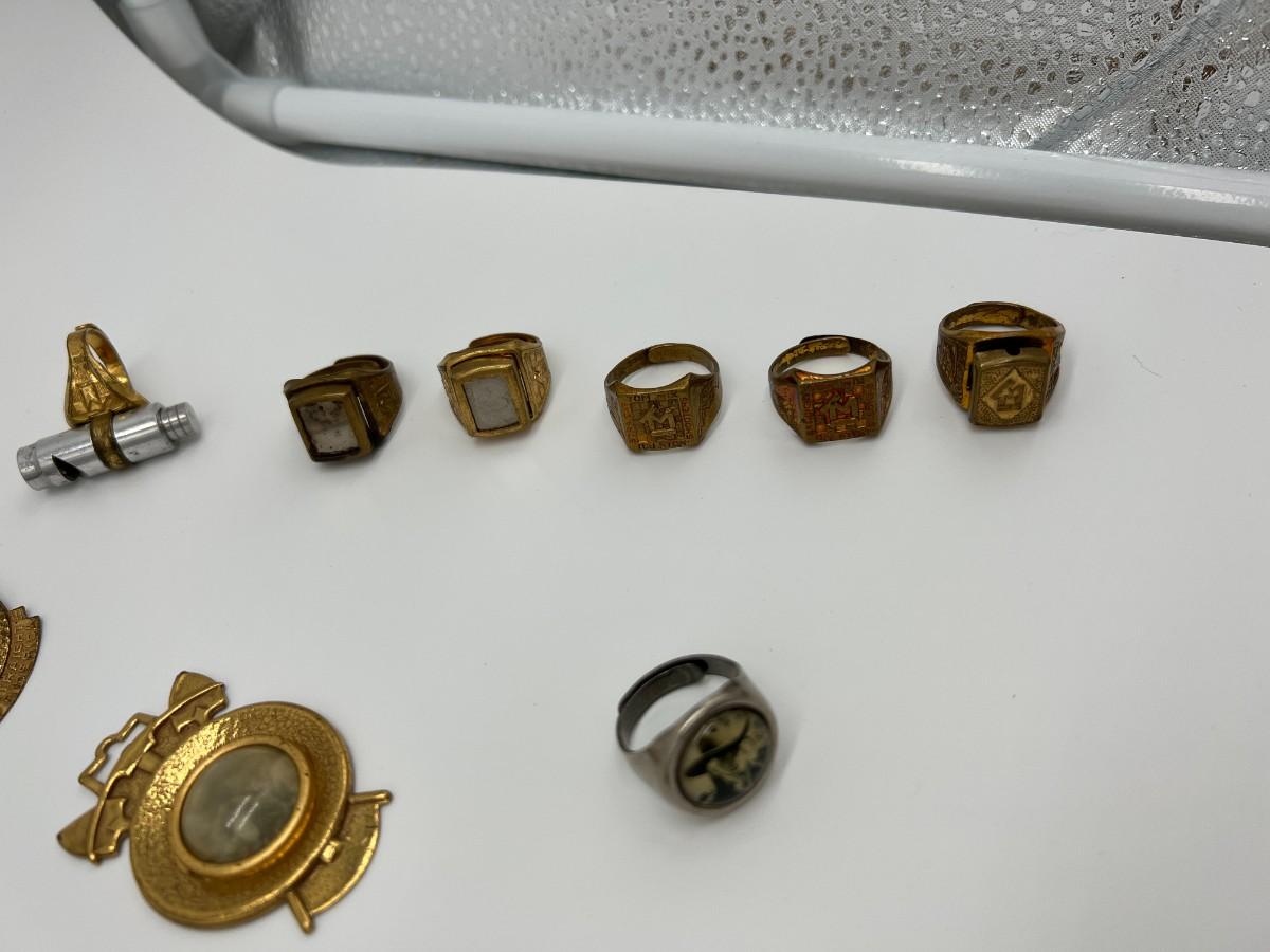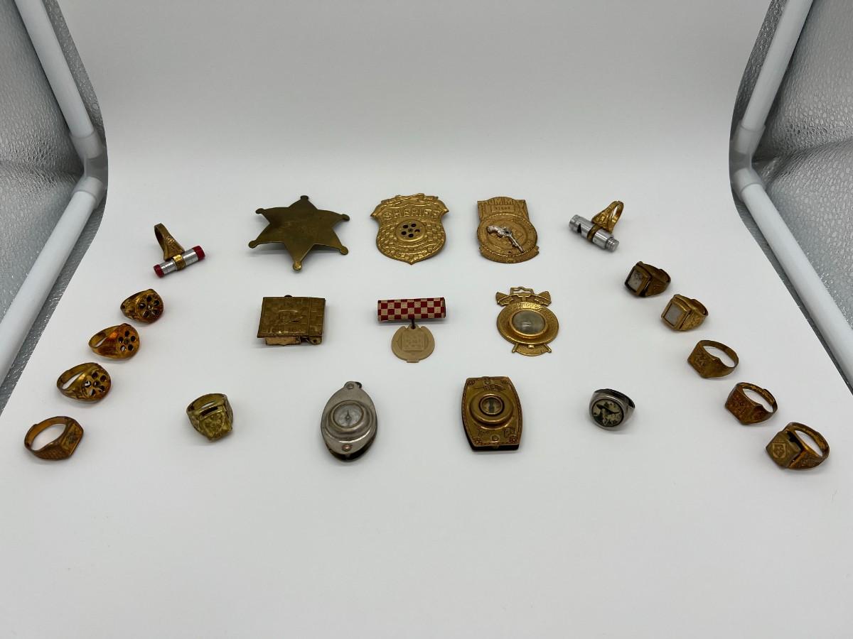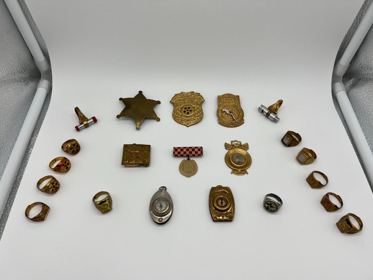 Lot of 21 Tom Mix Rings Badges Pins and Pendants from 1940s and 1950s