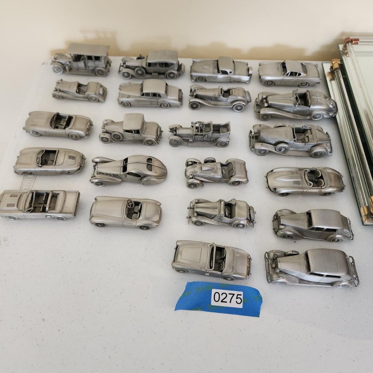 lot of 22 The Danbury Mint Pewter Cars 1928 Rolls Royce Doctors Coup, BMW 507, 1957 Porsche Speed, Shelby Mustang GT 350, Ford Thunderbird and others ster,
