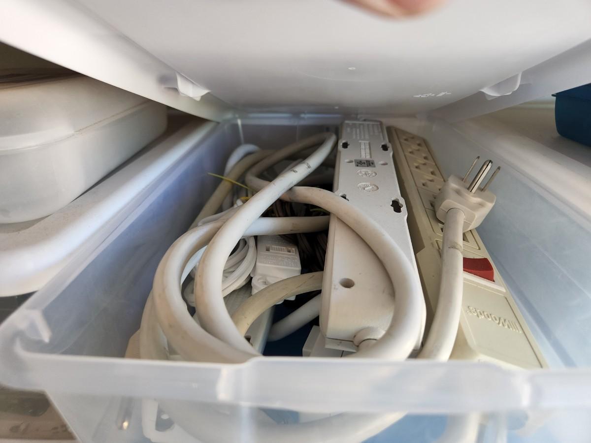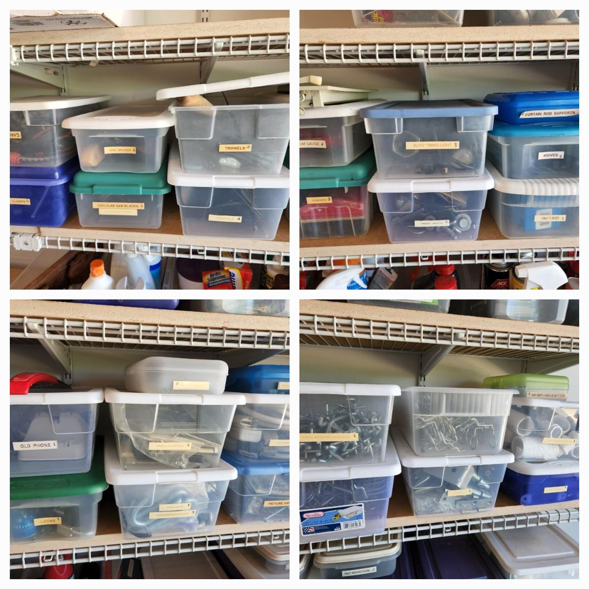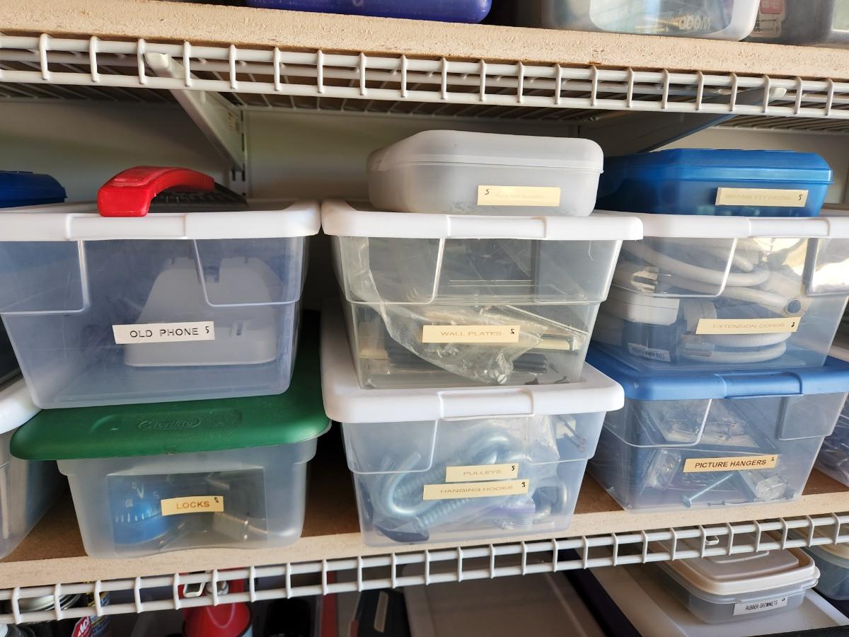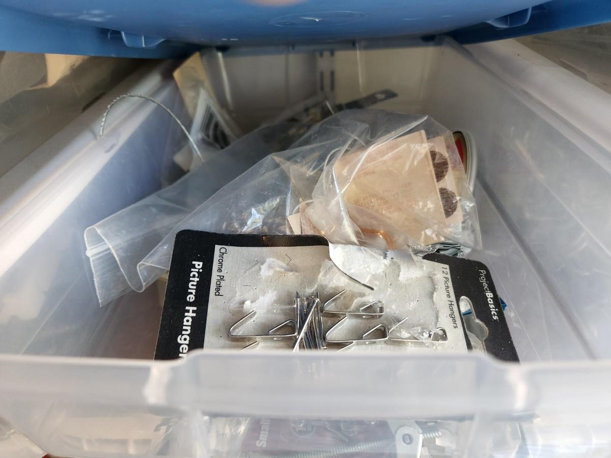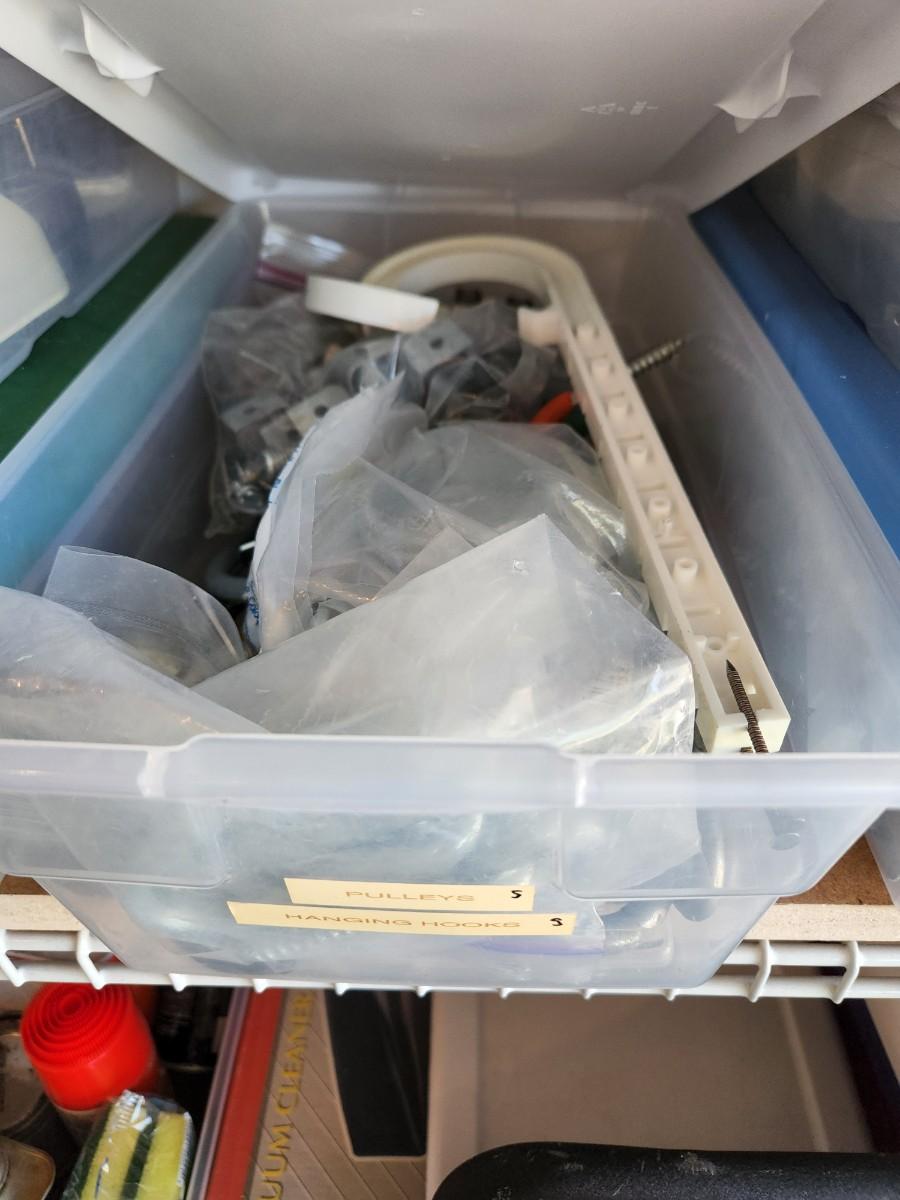 Peg Board Hooks, Power Cords, Chains and Combo Locks, Picture hooks, Steak Knives, Fittings, and More. See labels on Containers.