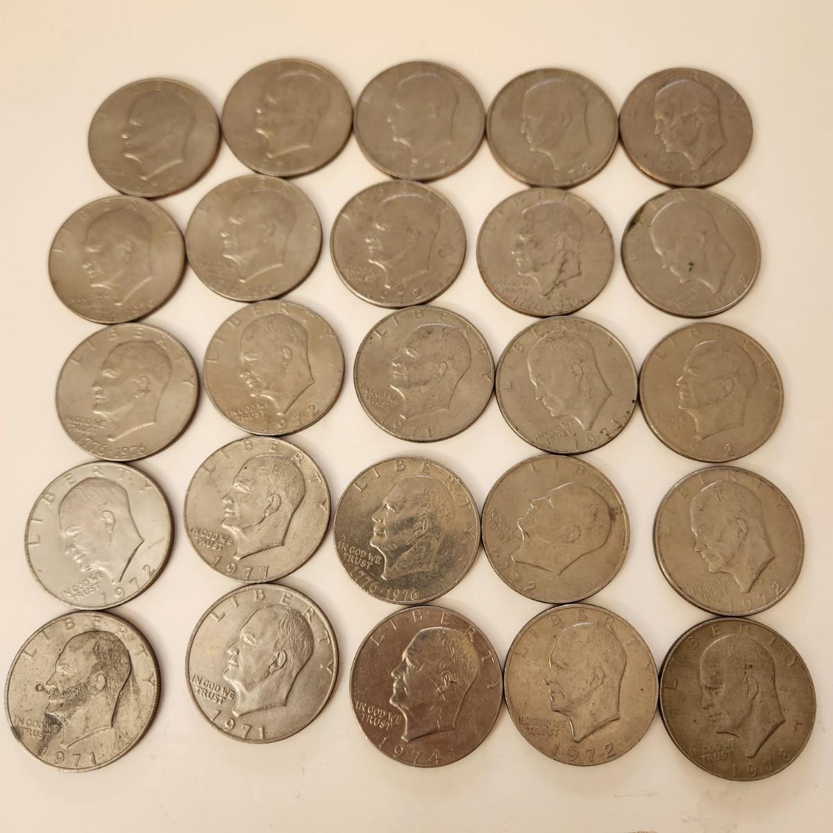 Lot of 25 Eisenhower Dollar Coins Mixed Date