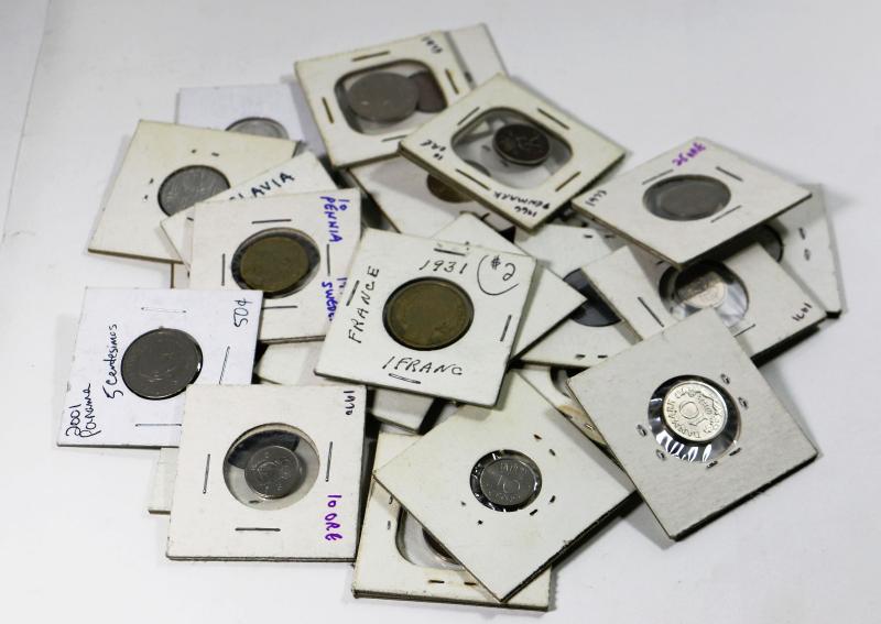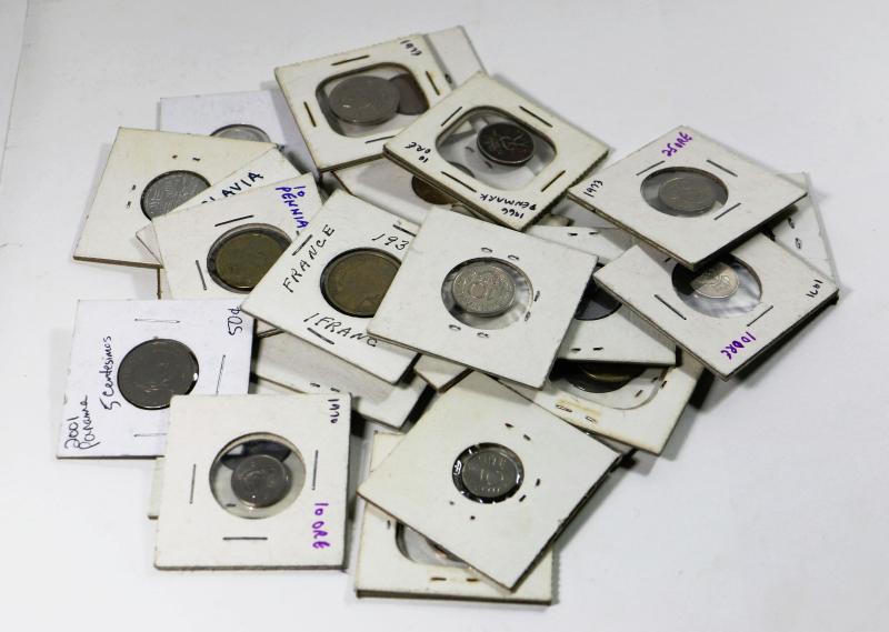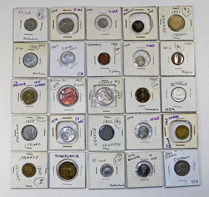 Lot of 25 Vintage Coins in Holders. International coins, as seen on pictures.