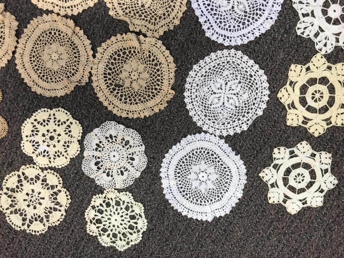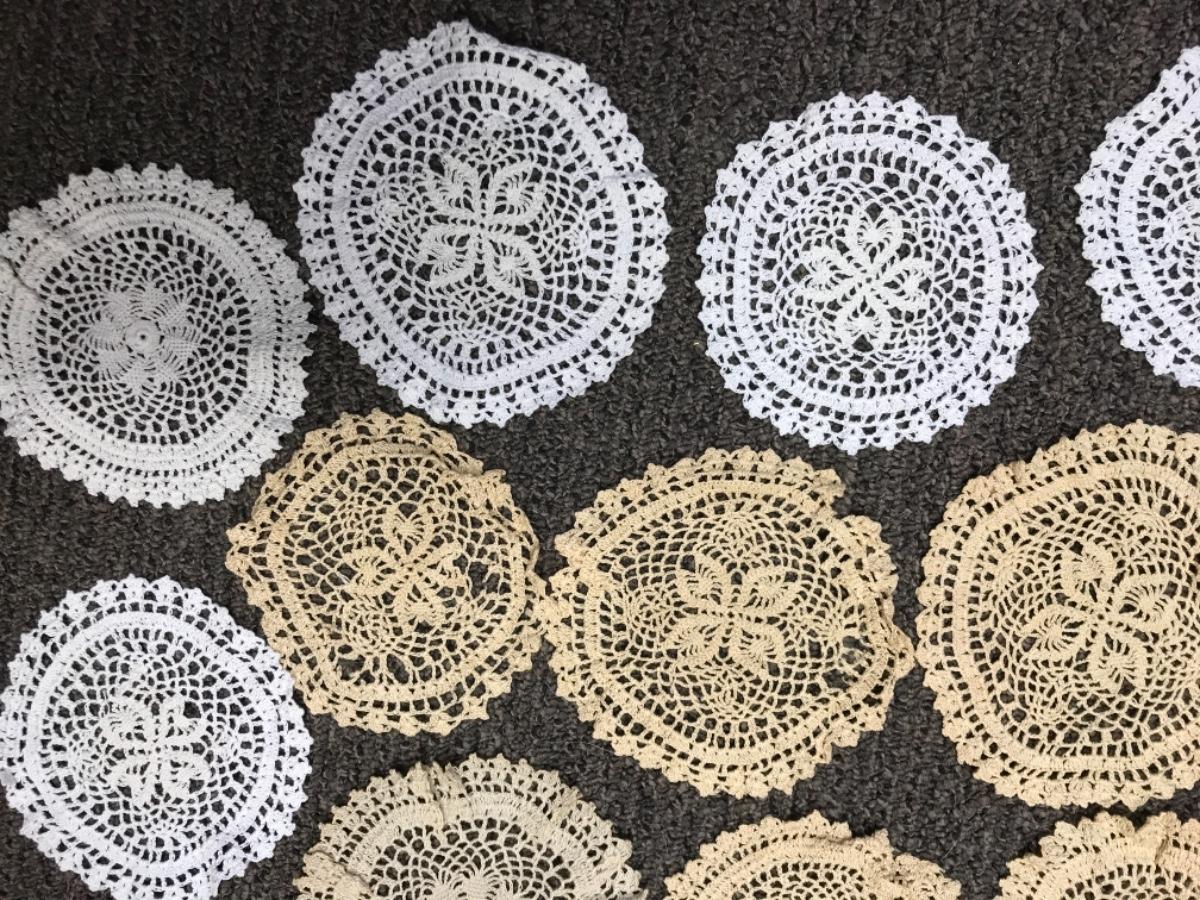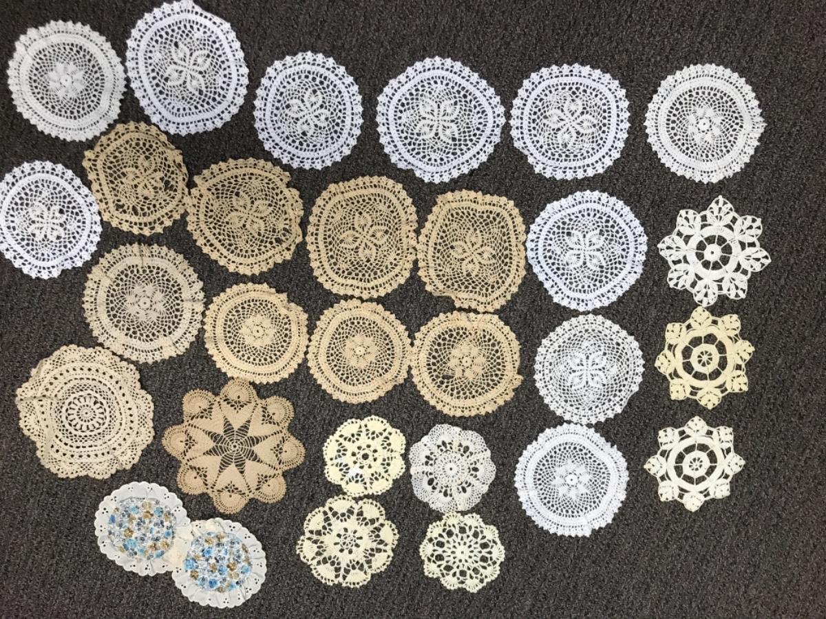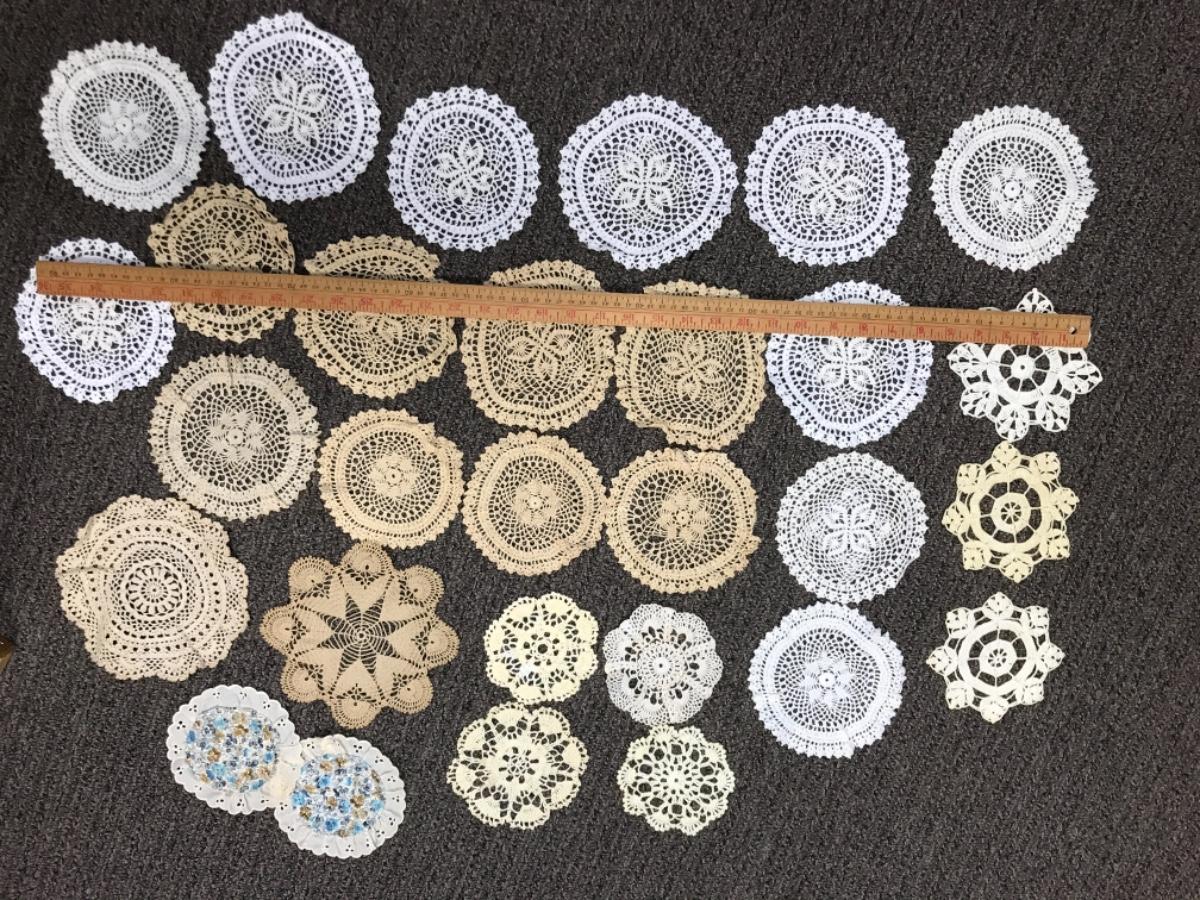 Lot of 27 doilies, vintage women, round approximately 4 to 5 inches