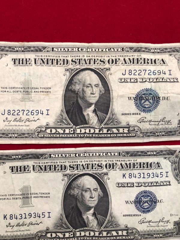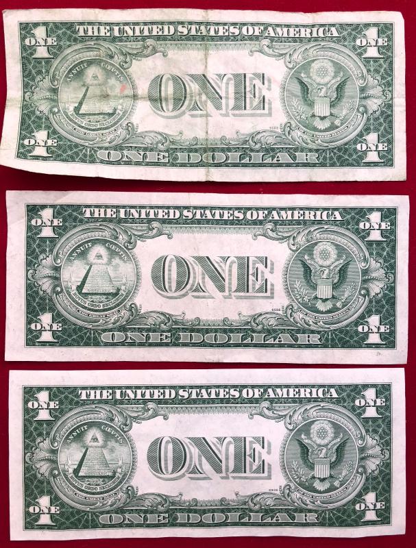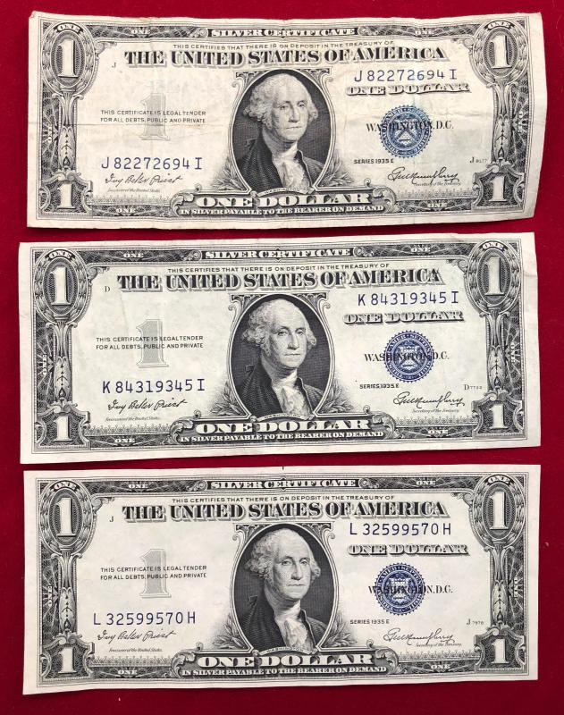 Lot of 3 $1 Dollar Silver Certificate 1935 E Blue Seal