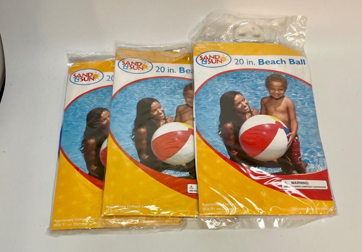 Lot of 3 blow-up beach balls Red, yellow, blue and white panels.