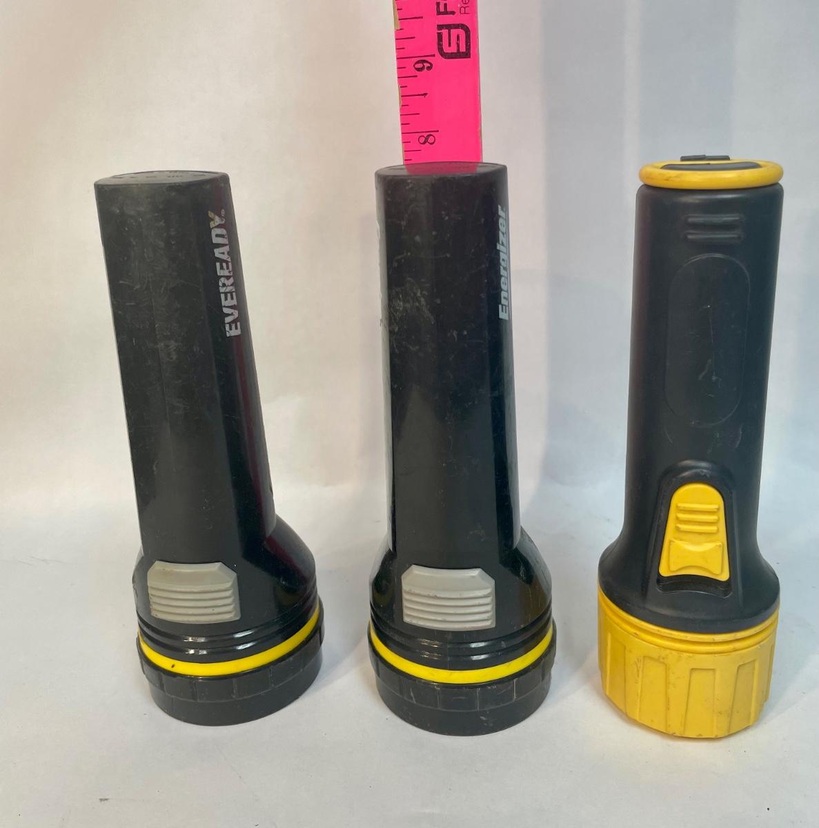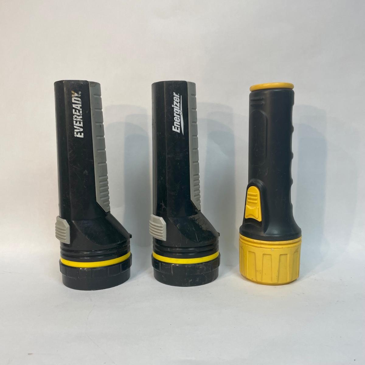Lot of 3 2D Cell Plastic Flashlights