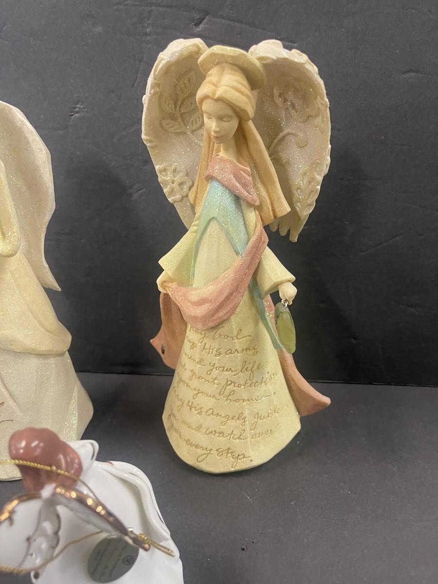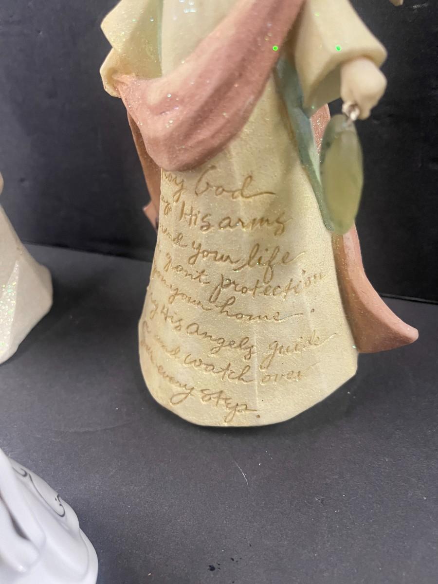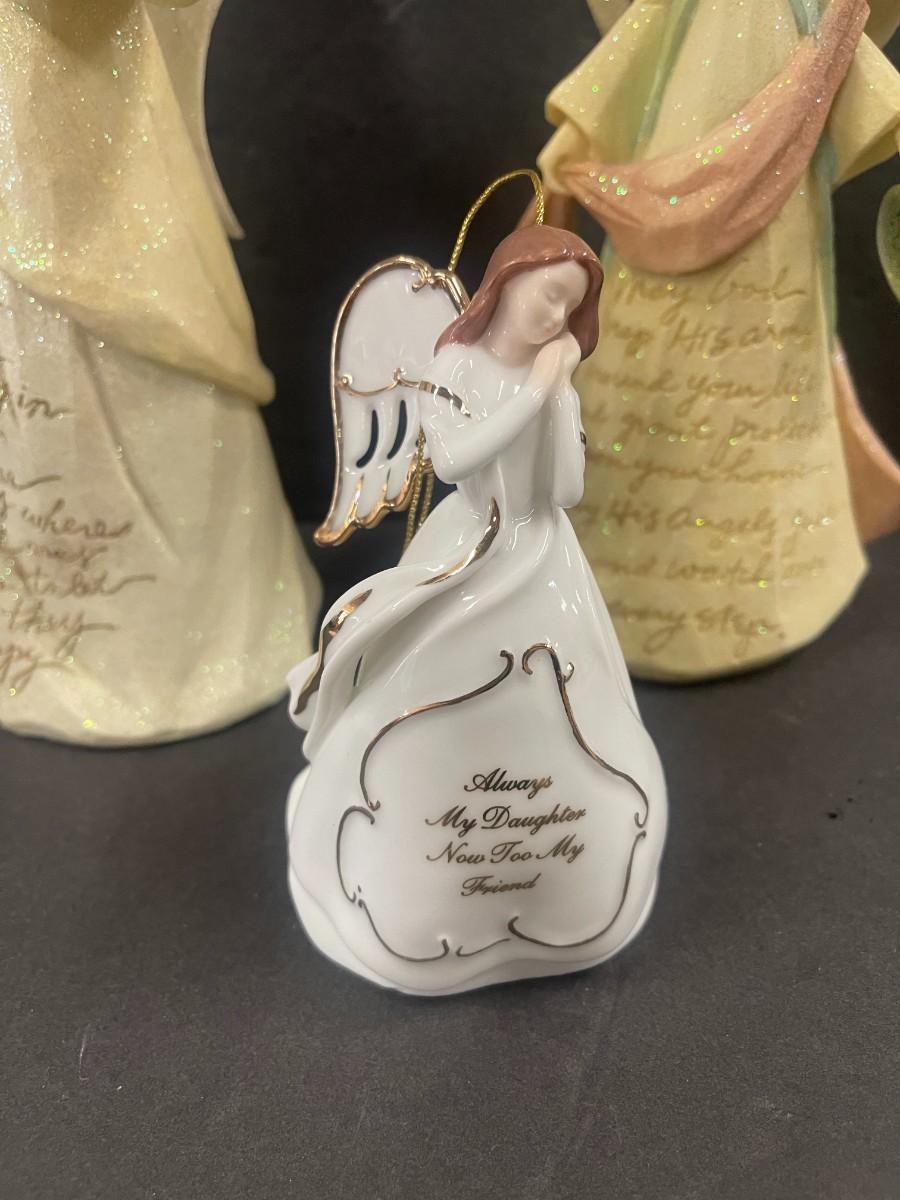 Includes: Branford Editions 2002 Heirloom Porcelain angel musical figurine and 2 Enesco Foundations resin angels.