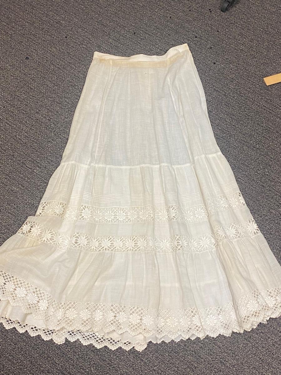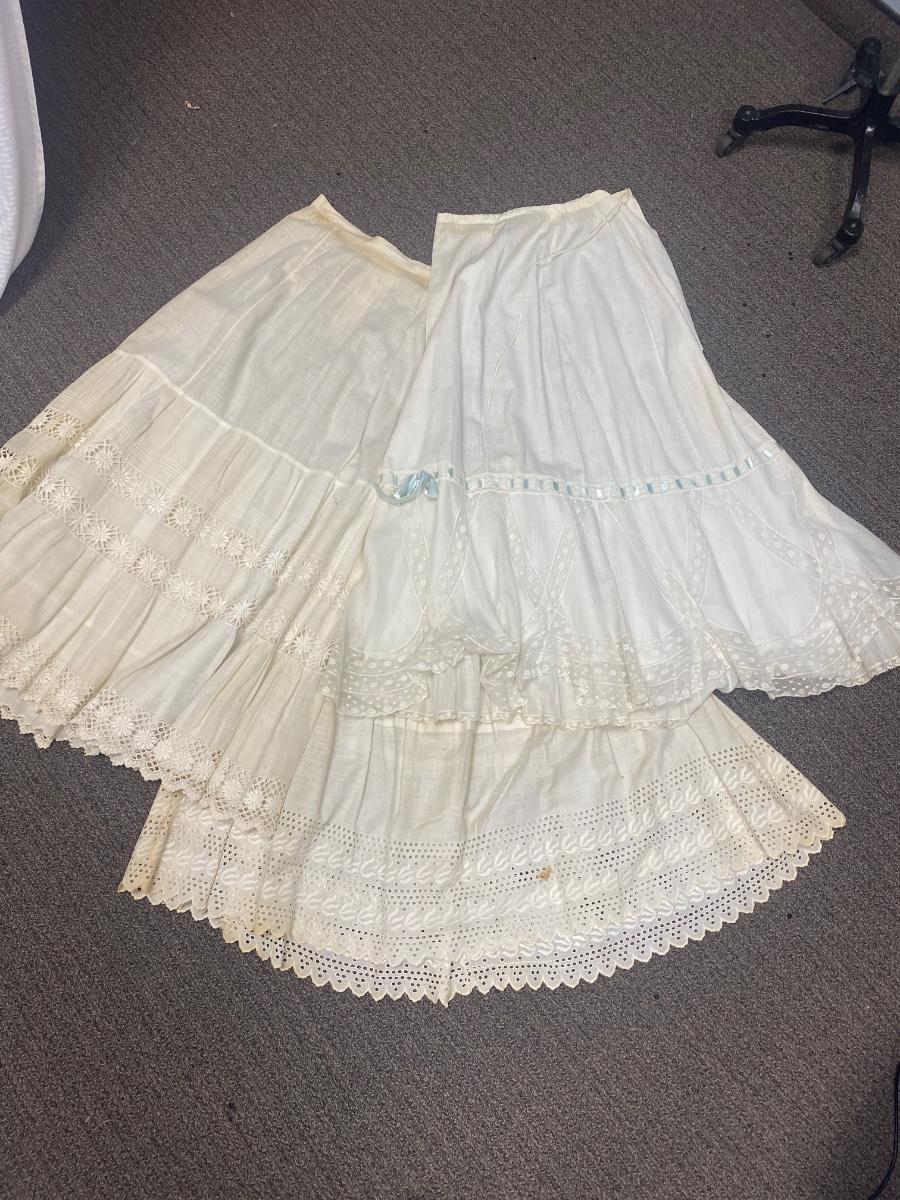 Lot of 3 Antique Victorian White Cotton Full Length Skirts Gibson Girl Romantic Boho