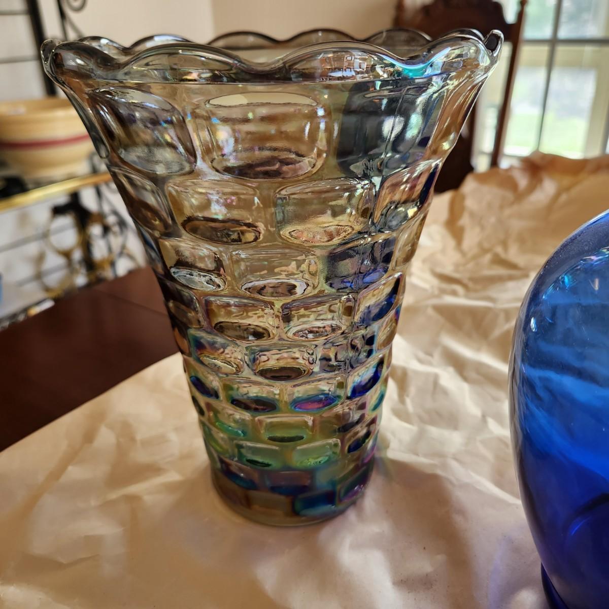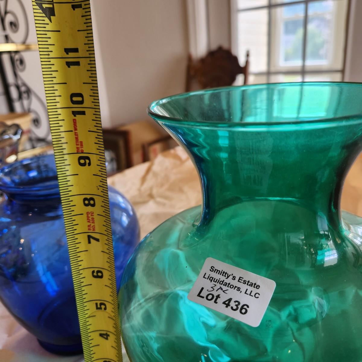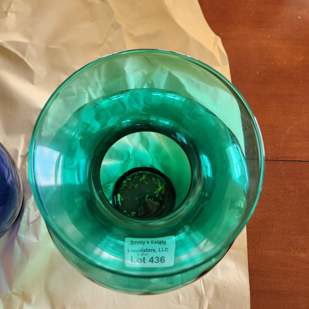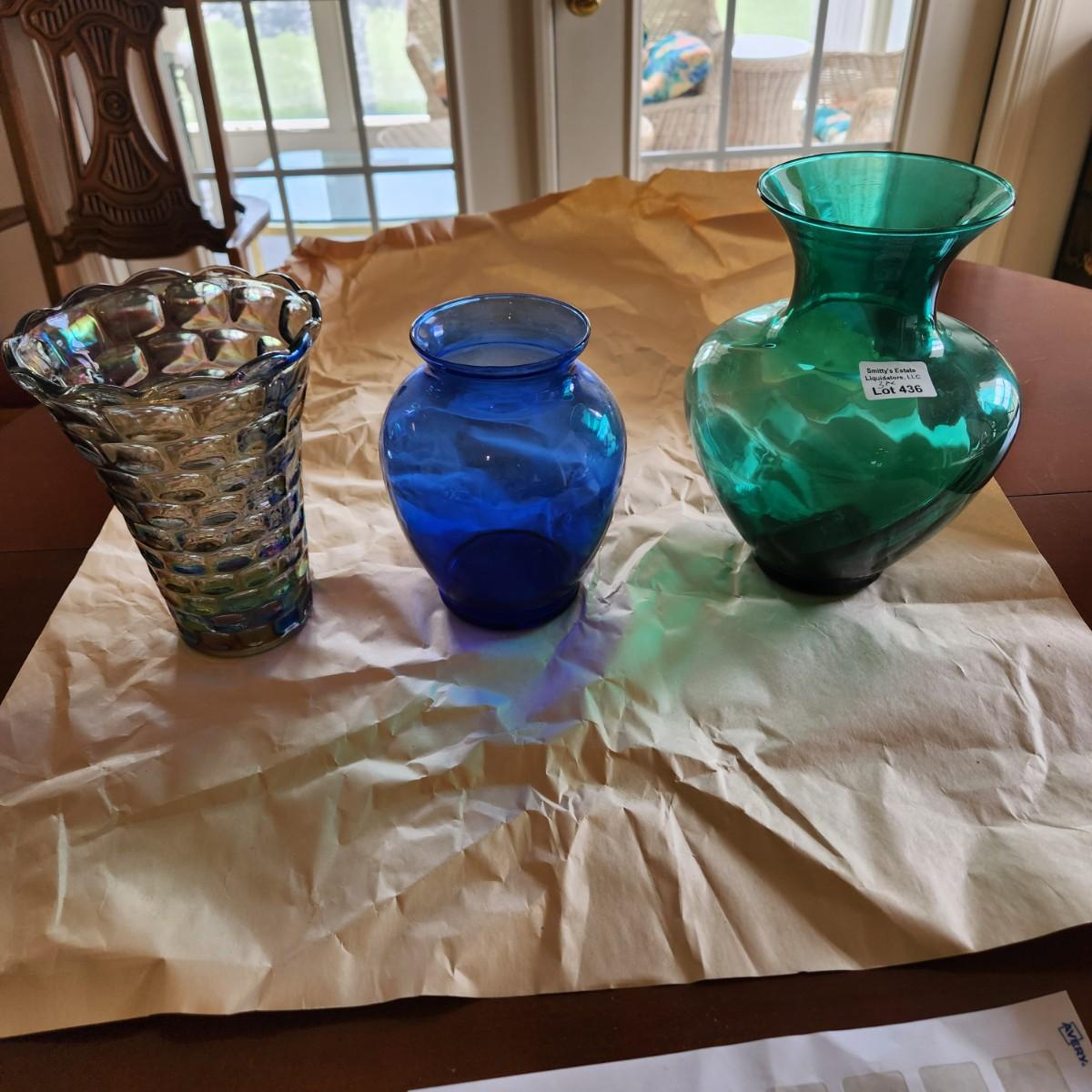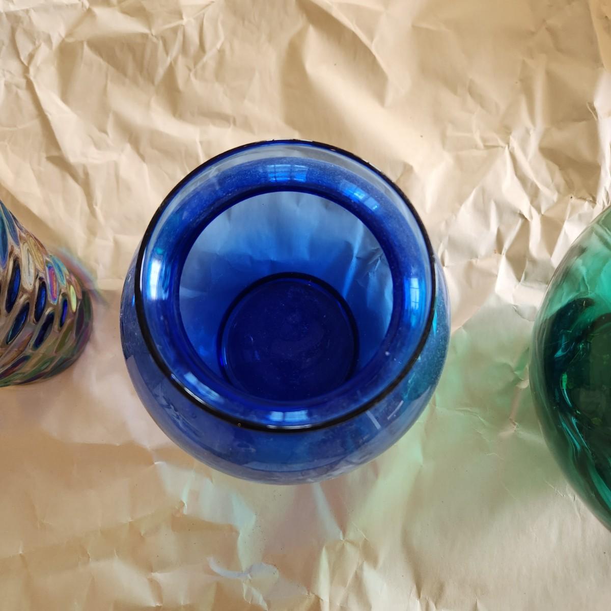 Lot of 3 Art Glass Vases Green Blue Iridescent