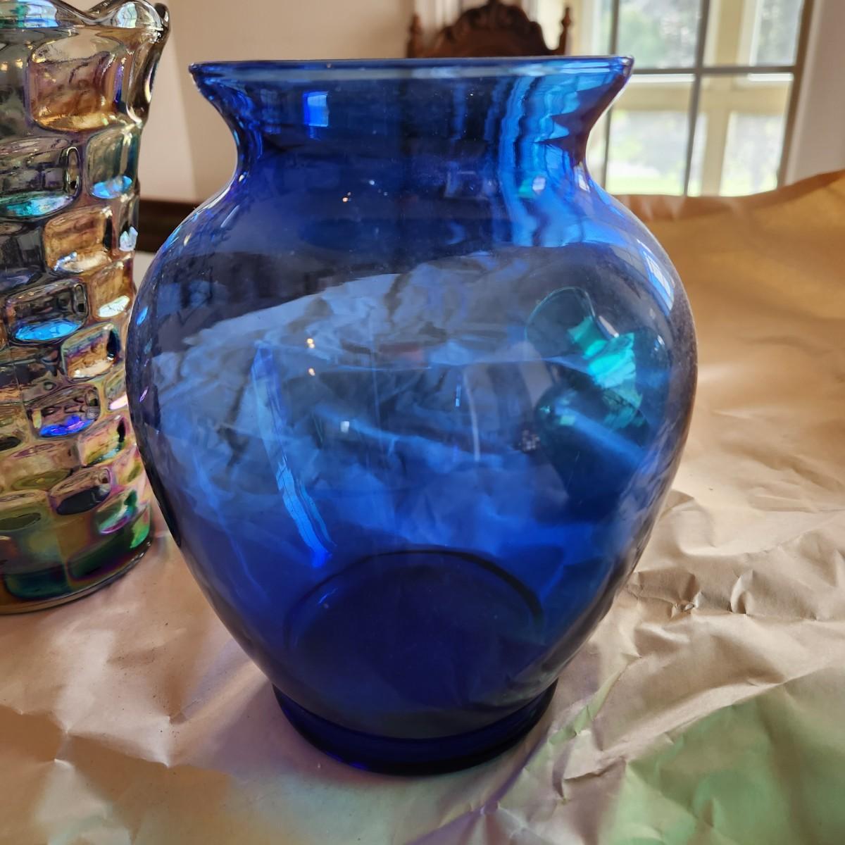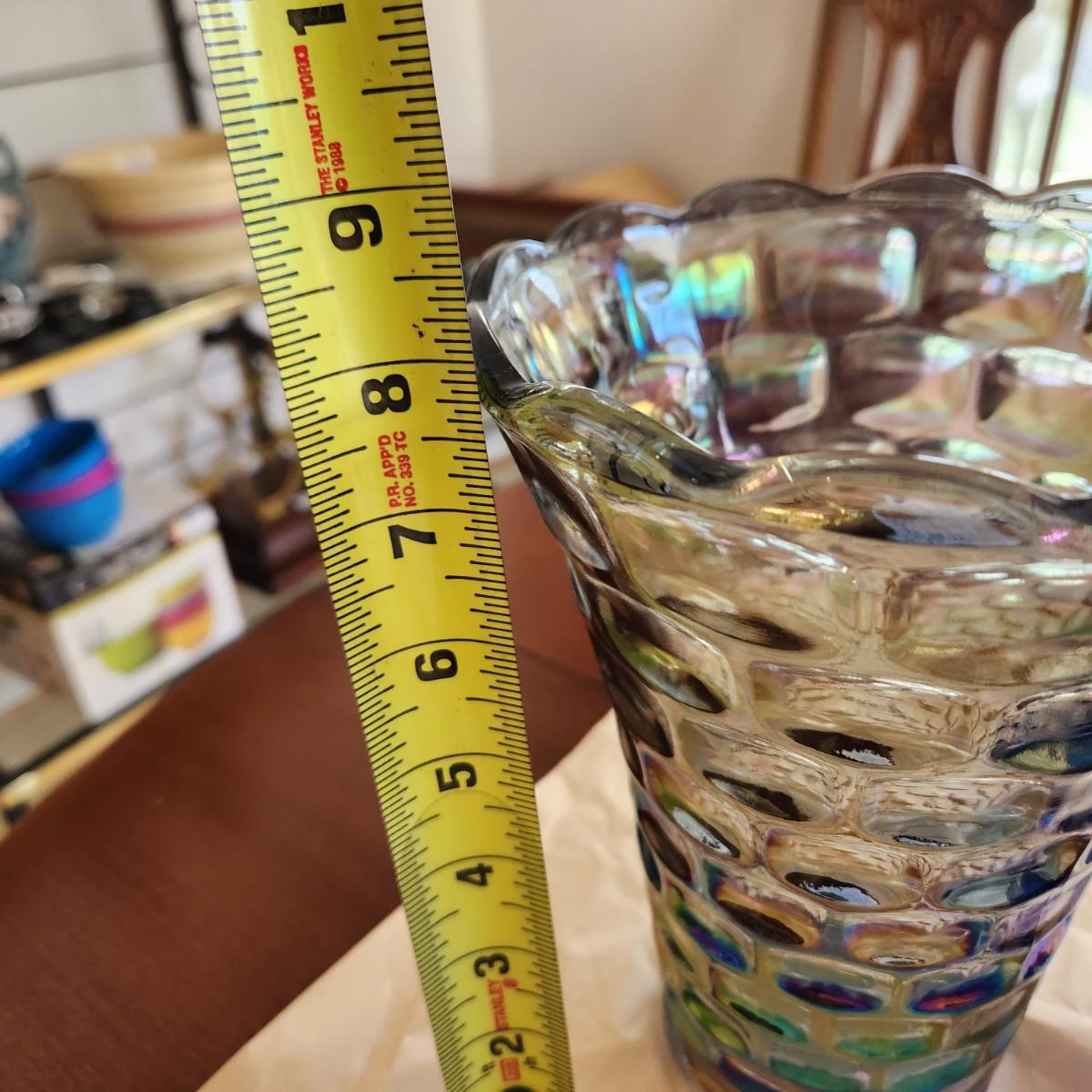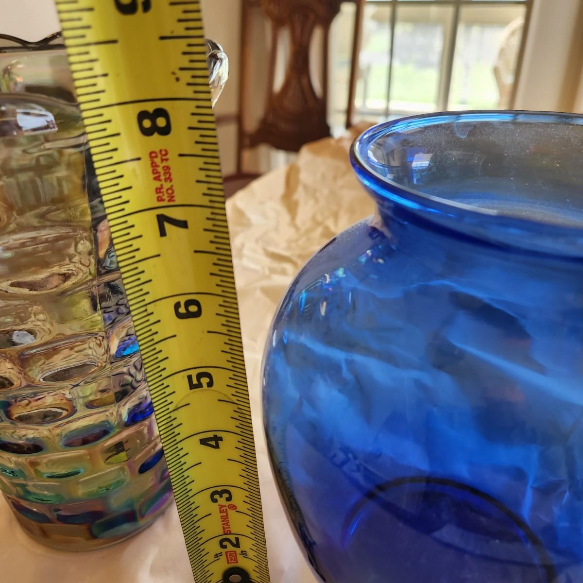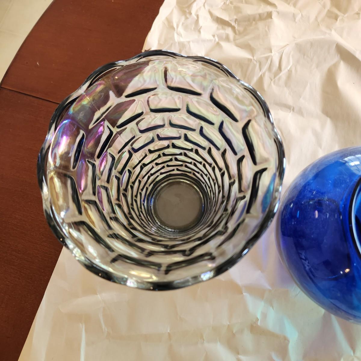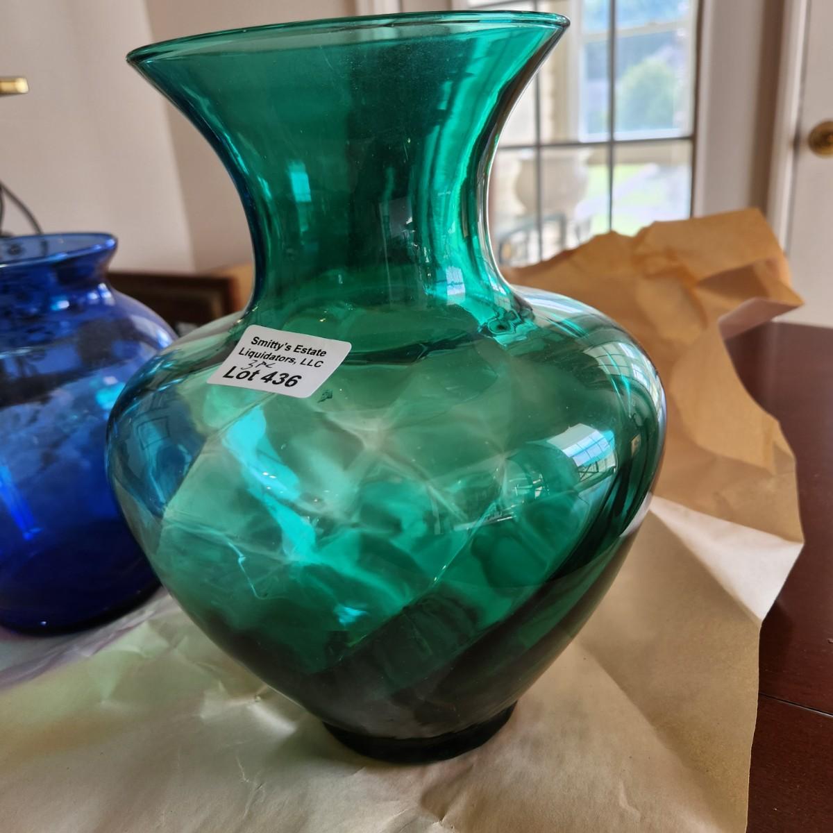 Lot of 3 Art Glass Vases Green Blue Iridescent