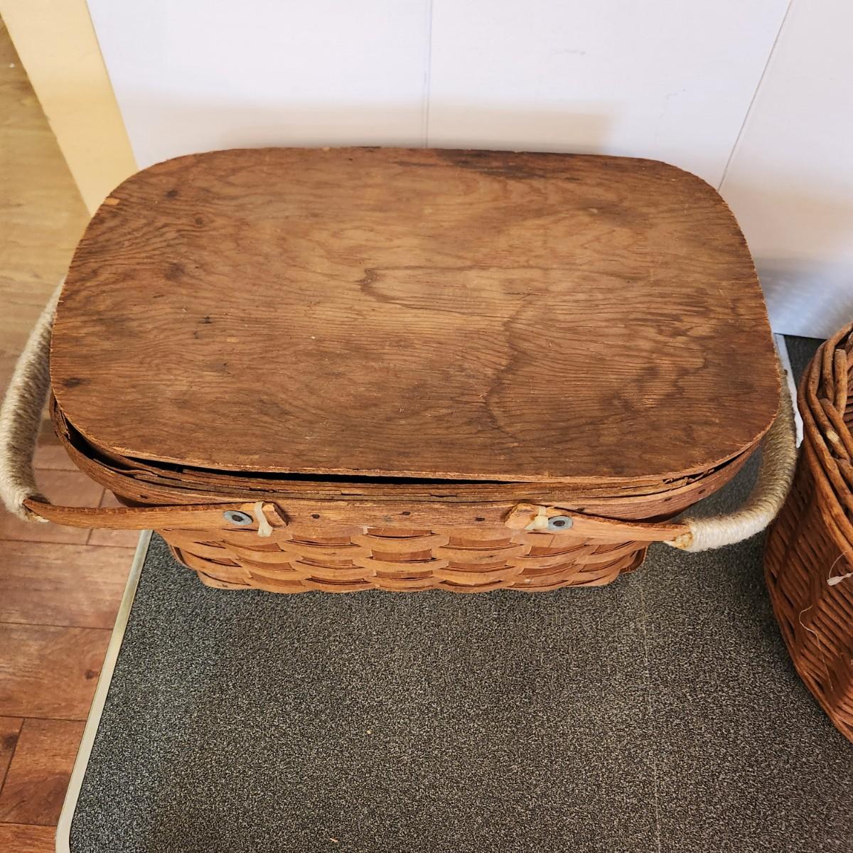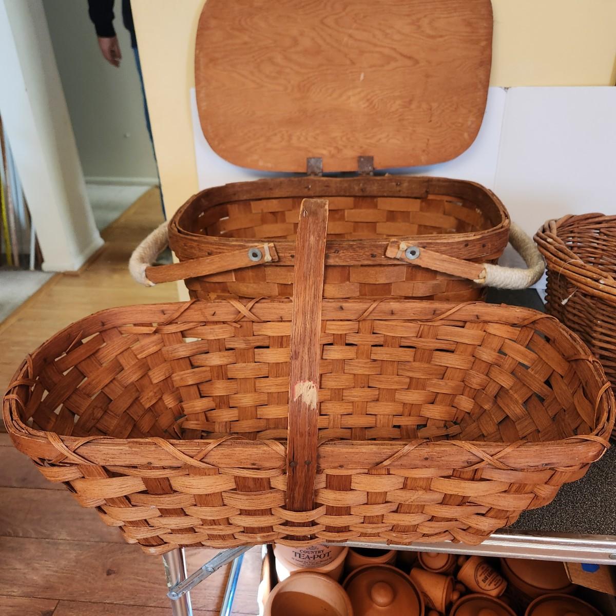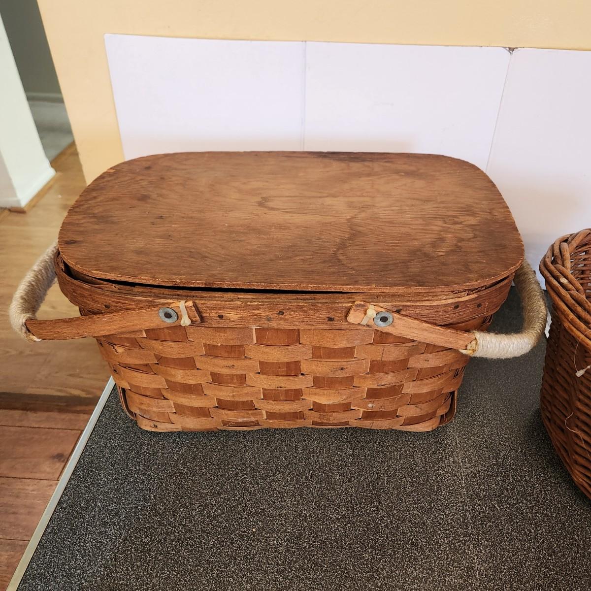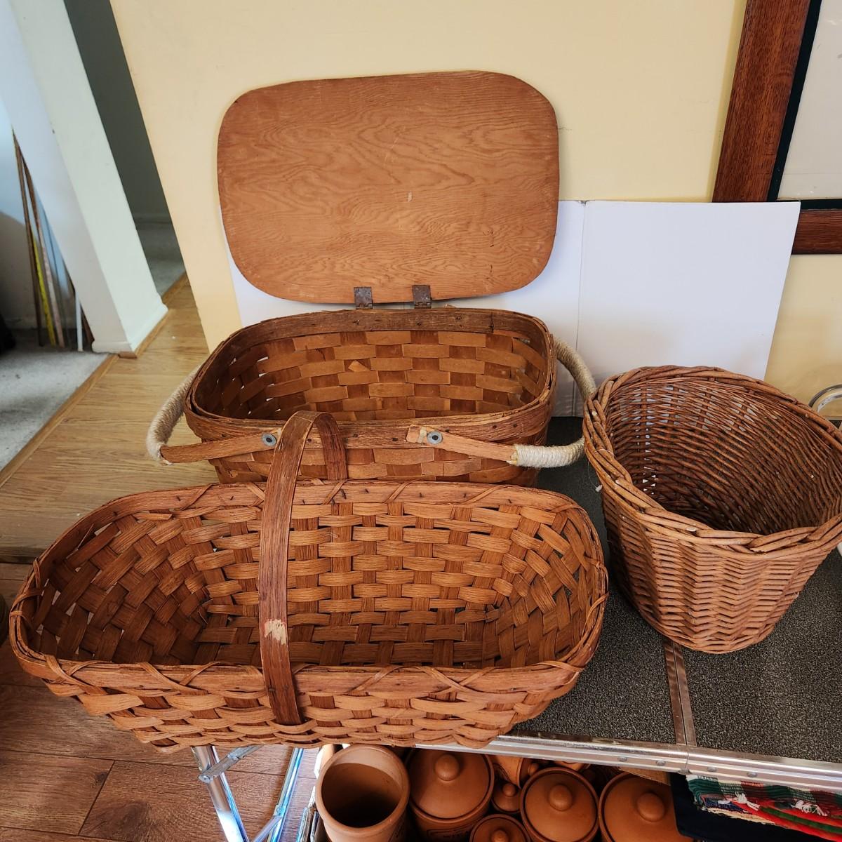 lot of 3 Baskets Picnic, Bicycle, Wood Handle