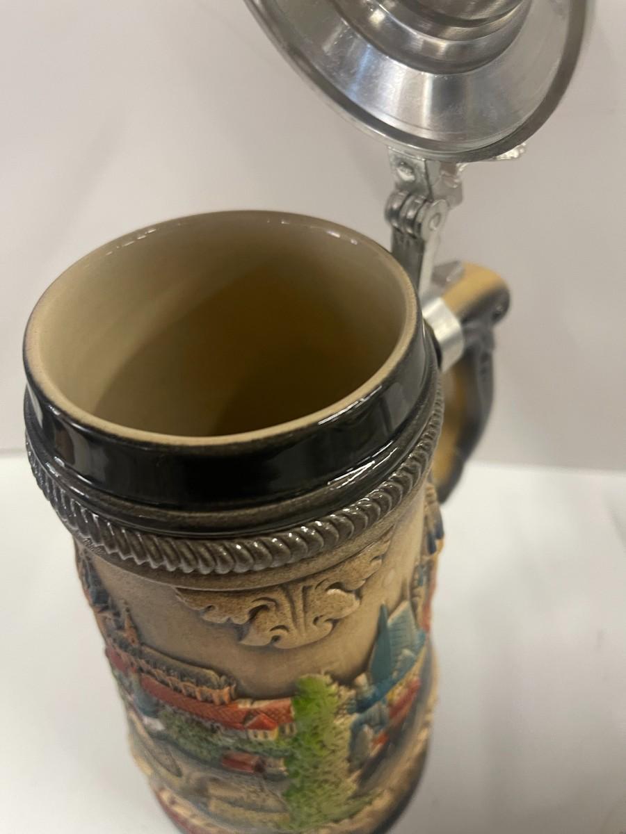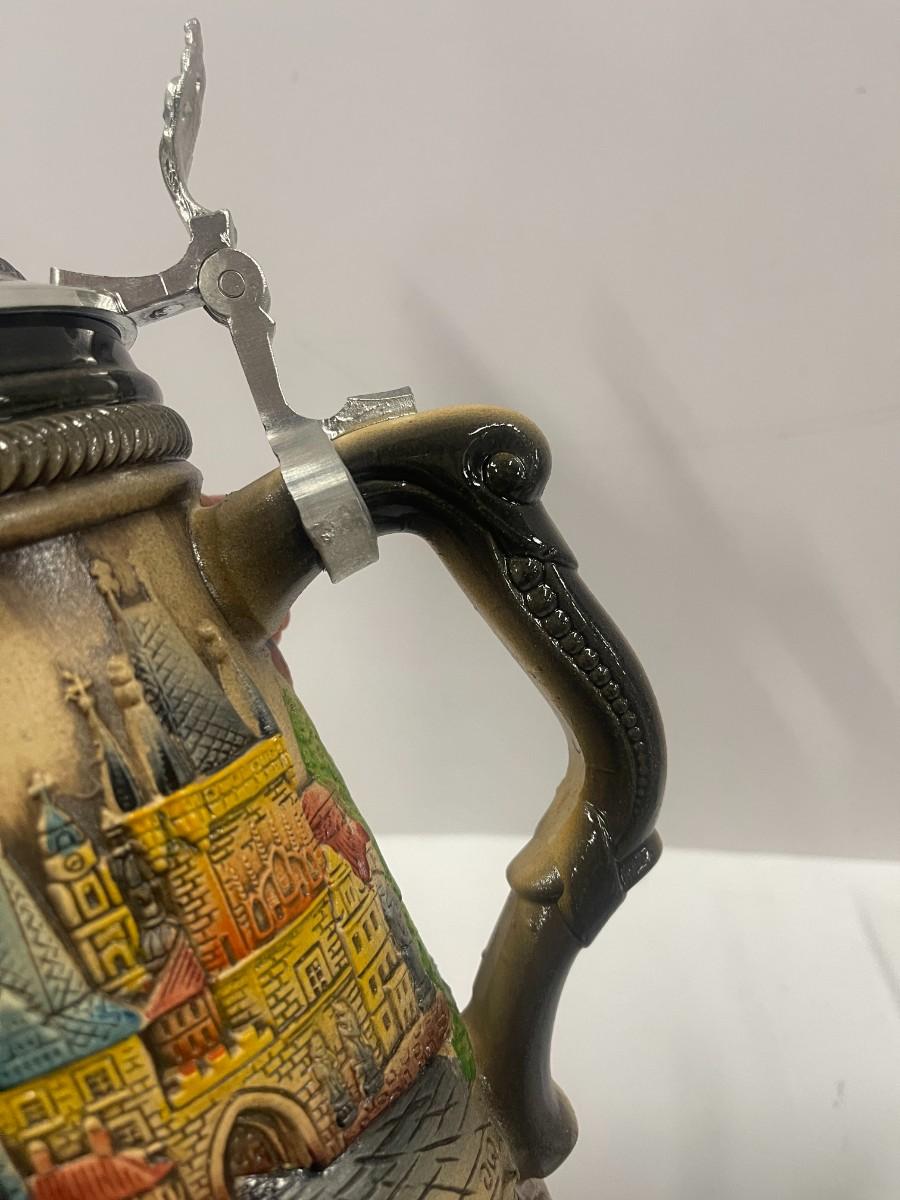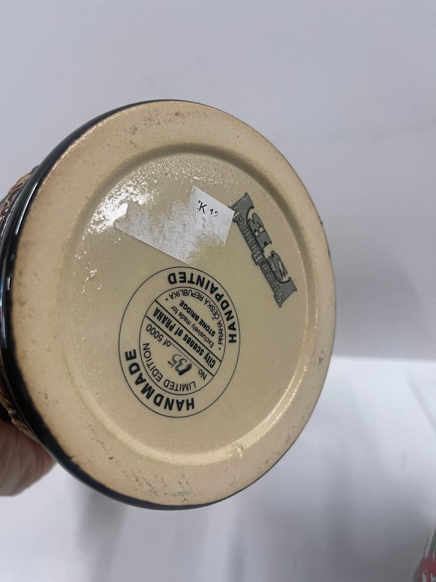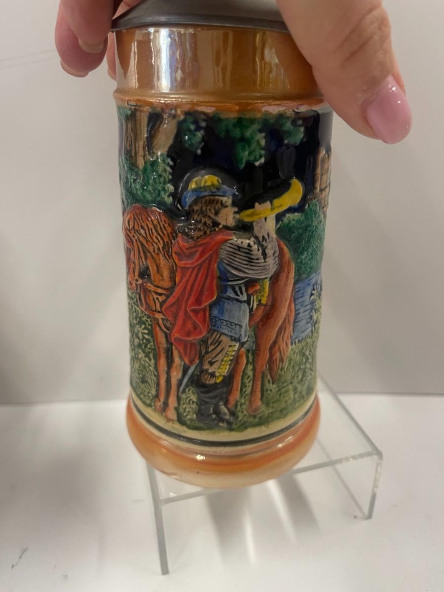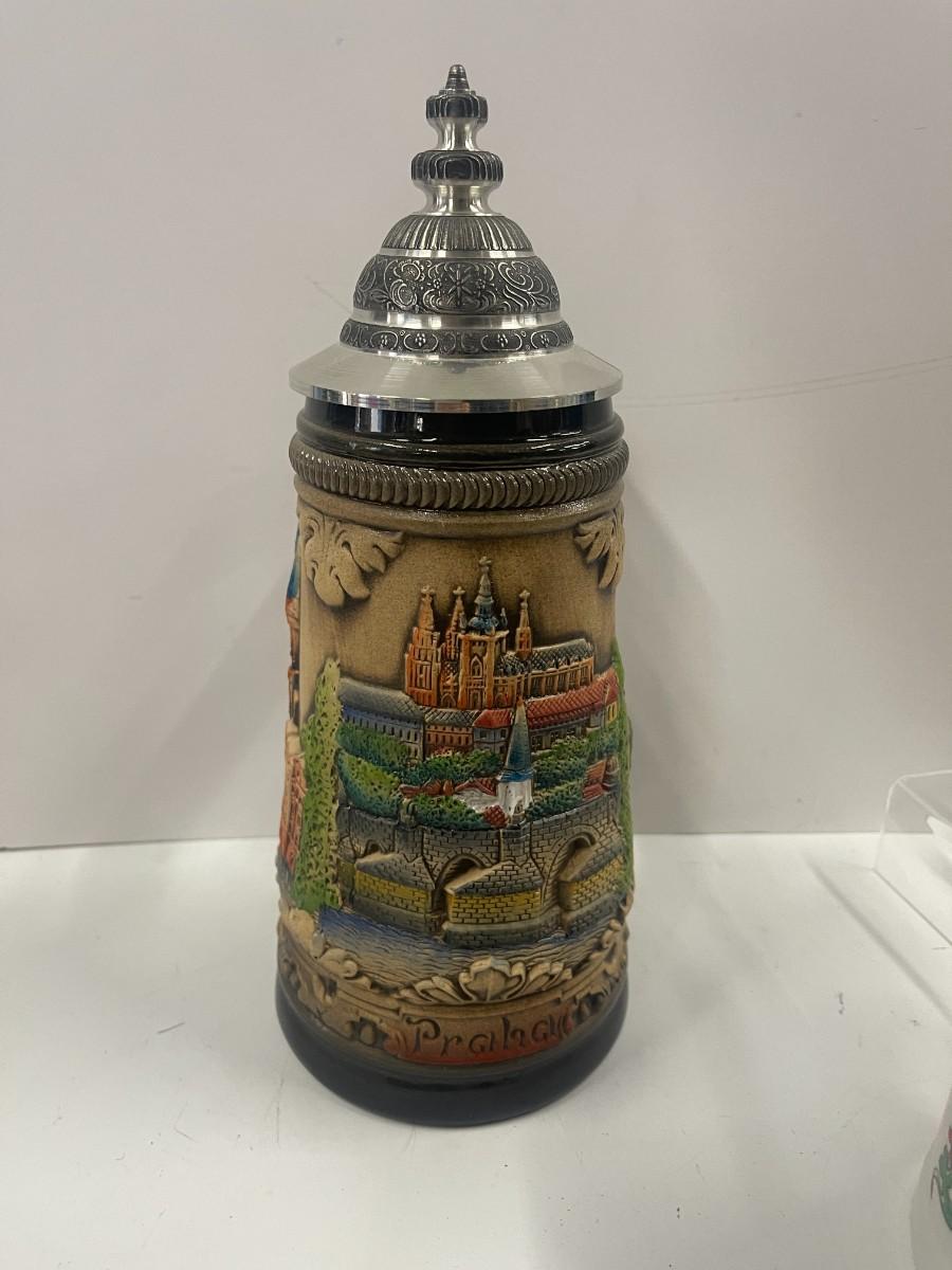 Lot of 3 beer steins: Vintage Heidelberg stein, stein marked Made in Germany, and one Stone Bridge stein from the Czech Republic