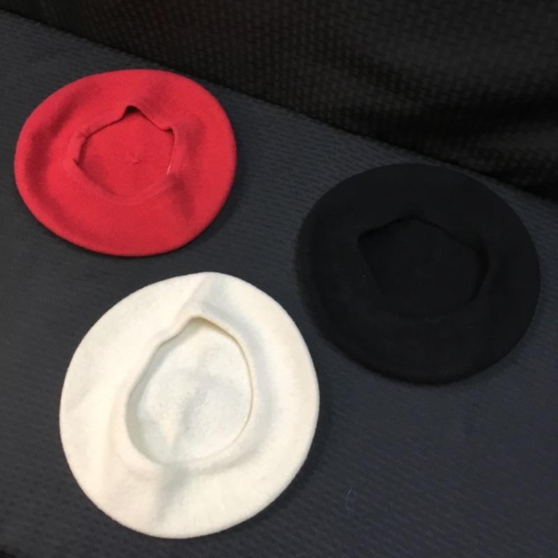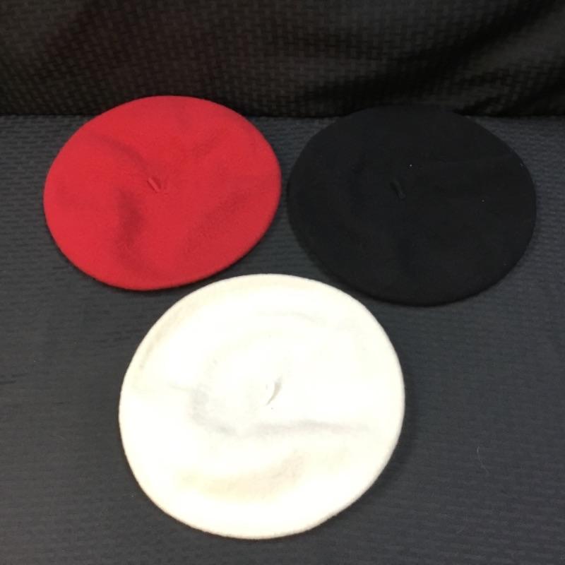Lot of three berets sized one size fits all. They are each 100% wool; see pictures.